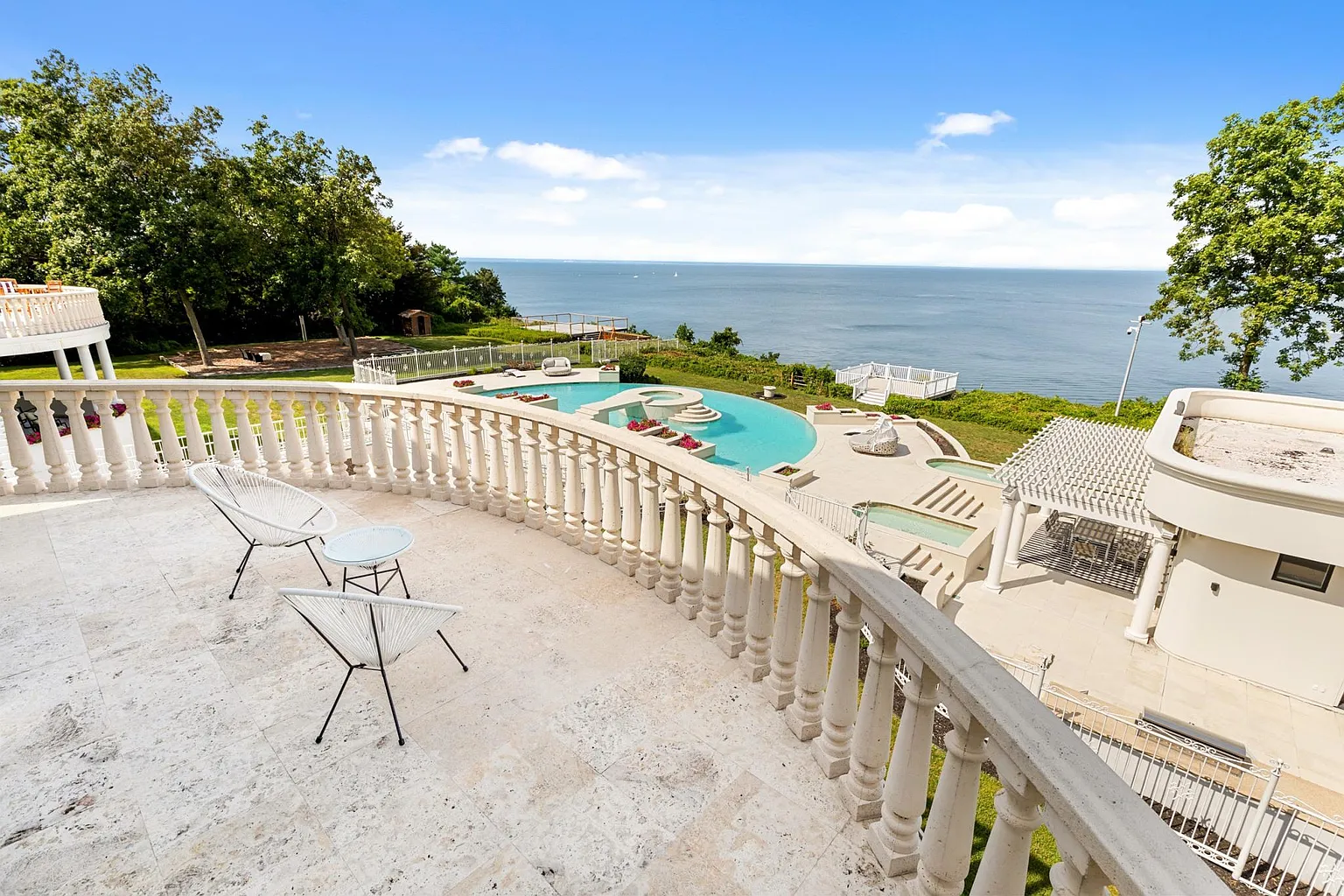 Located just two minutes from the picturesque Port Jefferson Village, this estate is surrounded by the natural beauty of the Long Island Sound. The charming waterfront village offers a harbor, boutique shops, a farmer’s market, waterfront restaurants, and stunning homes overlooking the cliffs. With easy access to the NY/CT ferry connecting to neighboring states, this location provides endless recreational opportunities. Whether relaxing on your private beach or enjoying boating, golfing, tennis, basketball, and paddleball right outside your door, this estate promises a lifestyle of unmatched luxury and serenity.