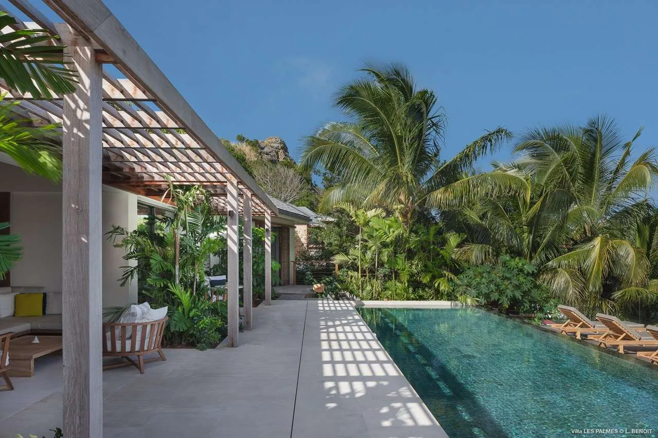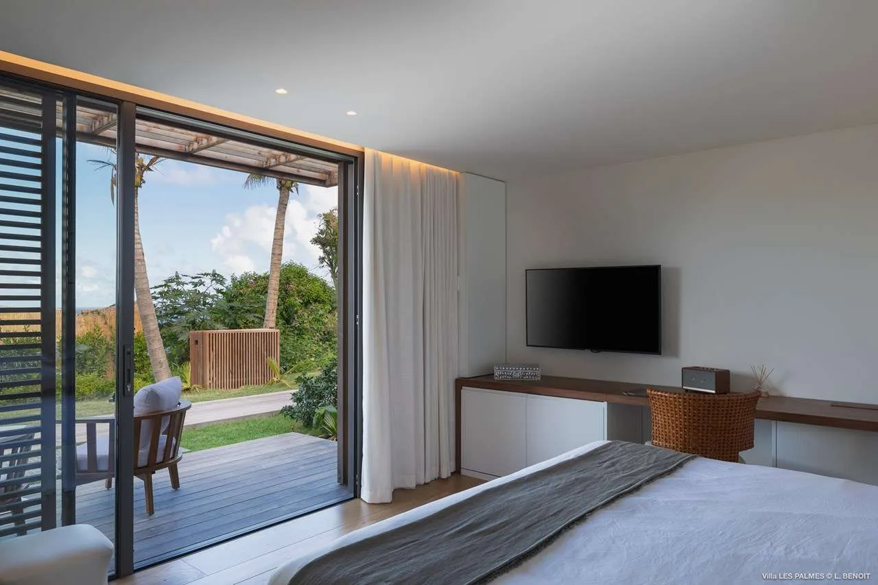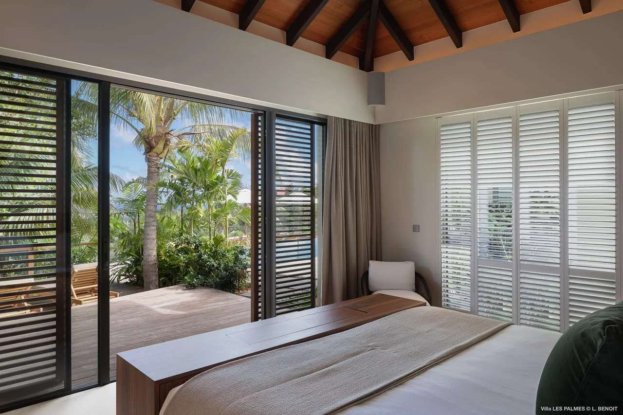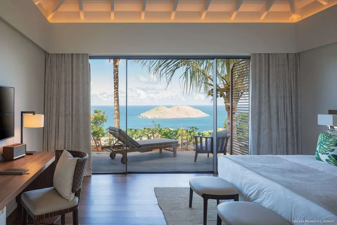 The property features five exquisite suites, thoughtfully designed across two levels. Each suite boasts its own bathroom, dressing room, and a private terrace that offers breathtaking views of the Caribbean Sea and the enchanting Bonhomme Island. Whether you’re enjoying a peaceful morning coffee or a sunset cocktail, these serene retreats promise an unparalleled experience, making every moment spent here truly unforgettable.