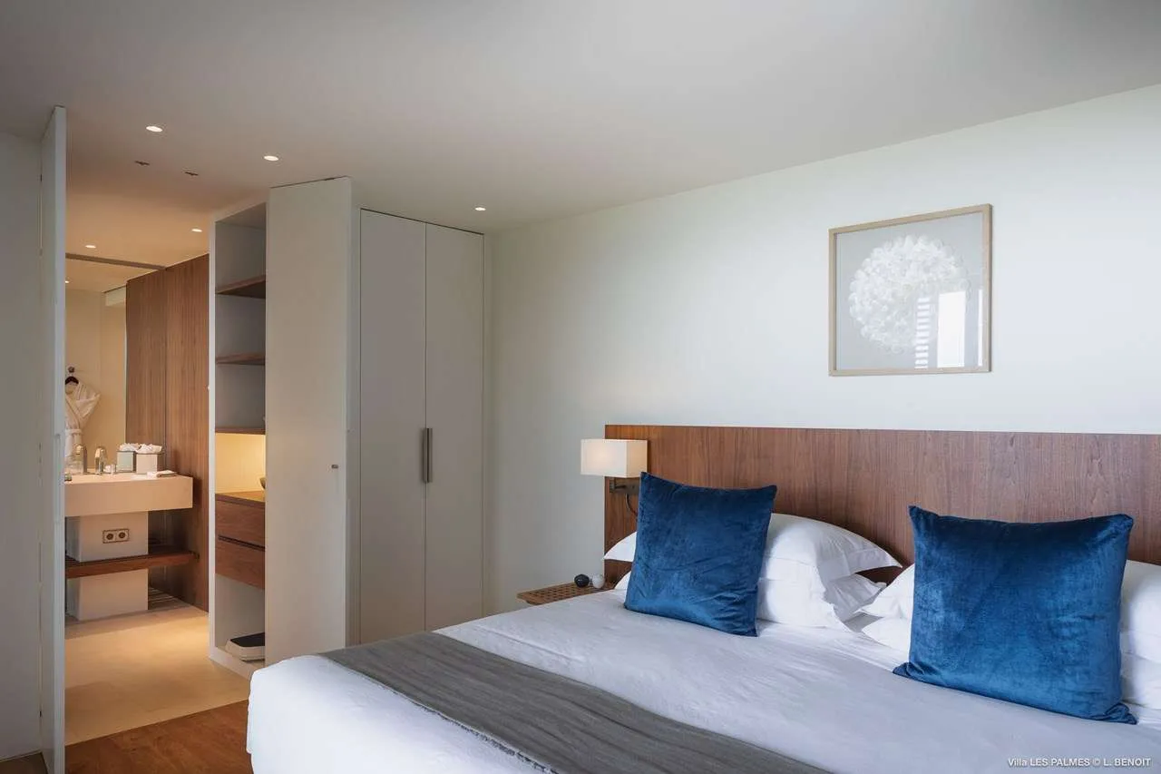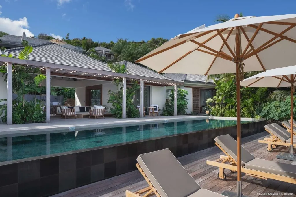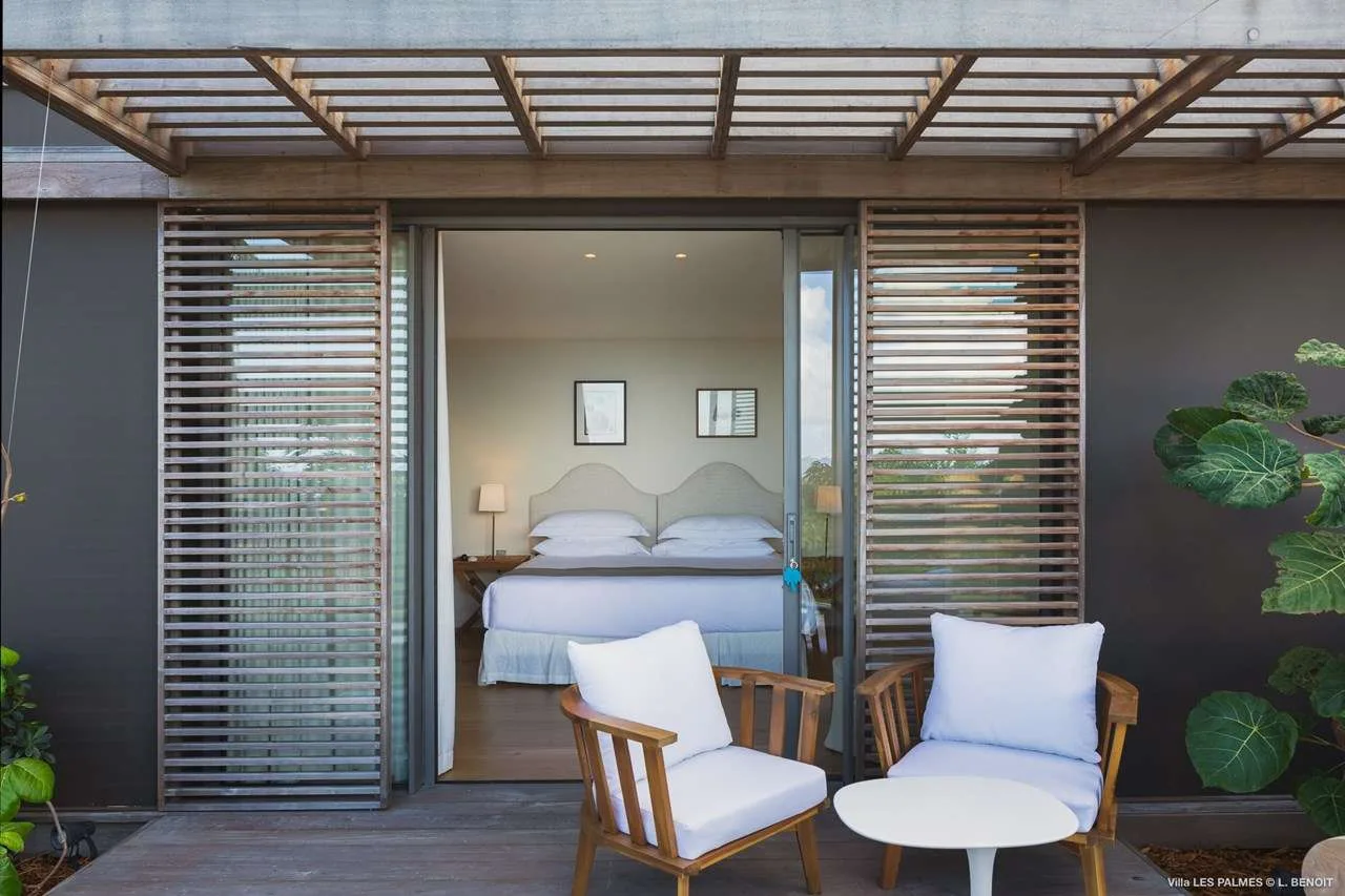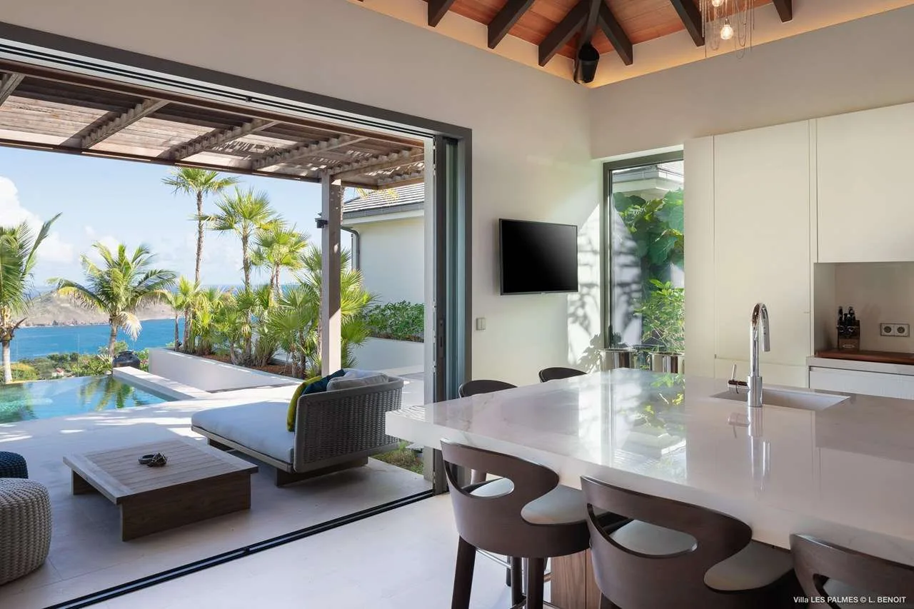 The property features five exquisite suites, thoughtfully designed across two levels. Each suite boasts its own bathroom, dressing room, and a private terrace that offers breathtaking views of the Caribbean Sea and the enchanting Bonhomme Island. Whether you’re enjoying a peaceful morning coffee or a sunset cocktail, these serene retreats promise an unparalleled experience, making every moment spent here truly unforgettable.