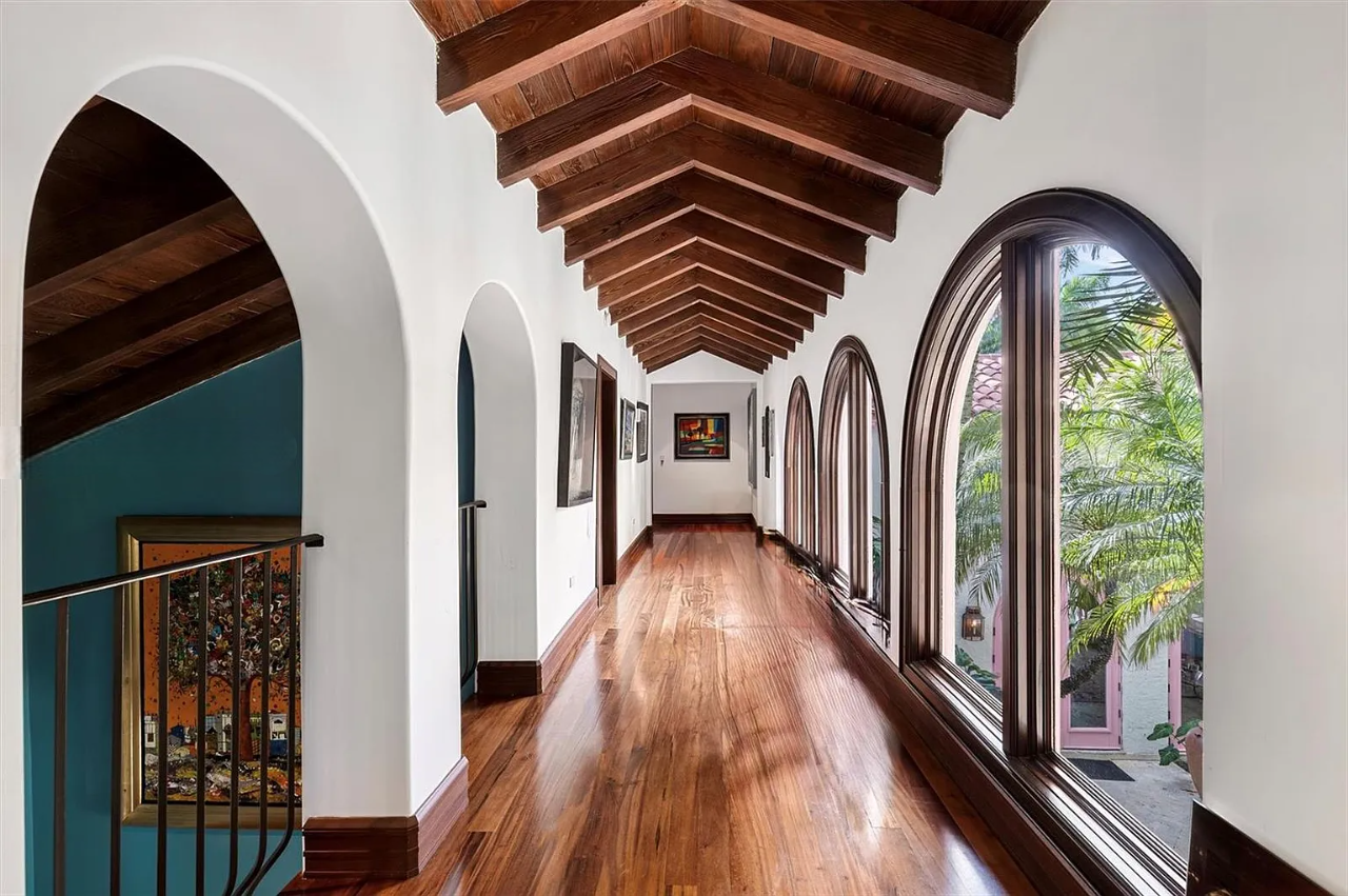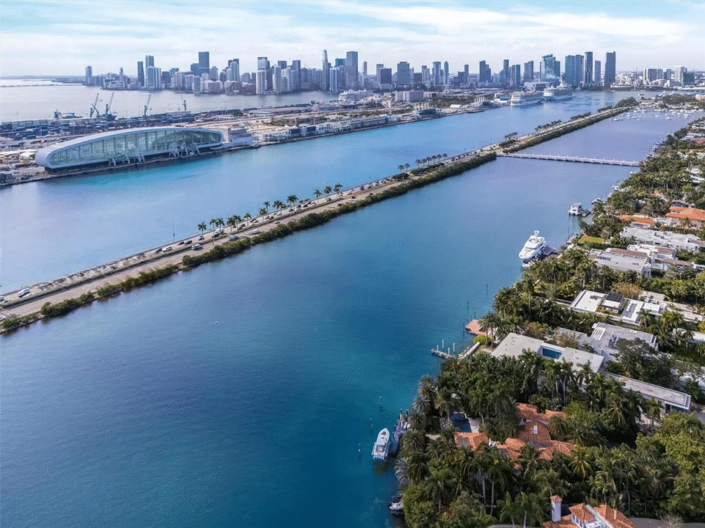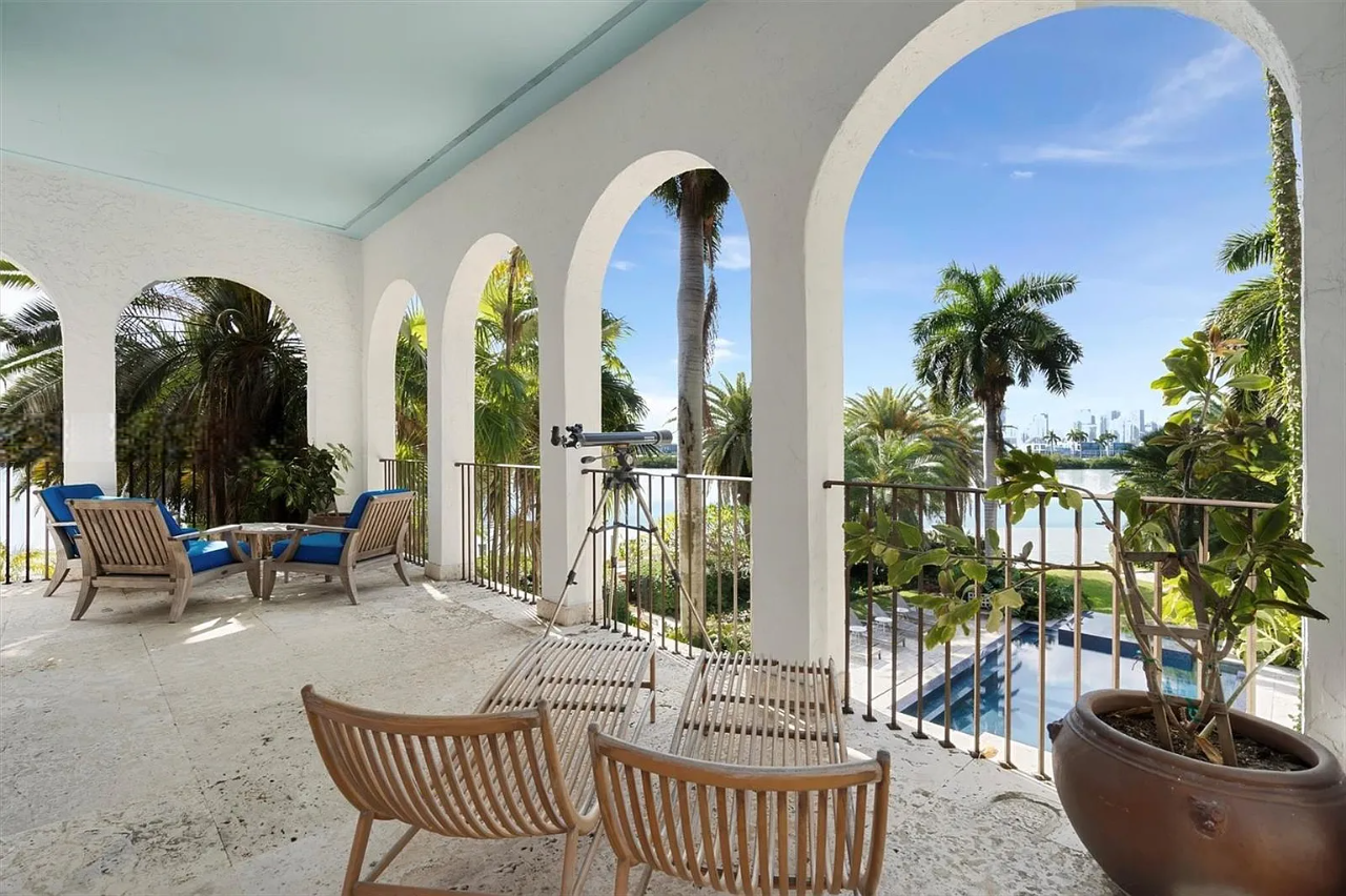 This exquisite Mediterranean Revival estate masterfully integrates timeless architecture with contemporary luxury. Fully renovated in 2009, the residence is situated on a generous 35,348 sq. ft. lot within the prestigious Palm Island community, boasting 220 feet of coveted south-facing waterfront that can accommodate yachts up to 205 feet in length. The thoughtfully designed expansion features a lavish primary suite, a gourmet chef’s kitchen, and a spacious family wing, ensuring ample room for relaxation and entertainment.