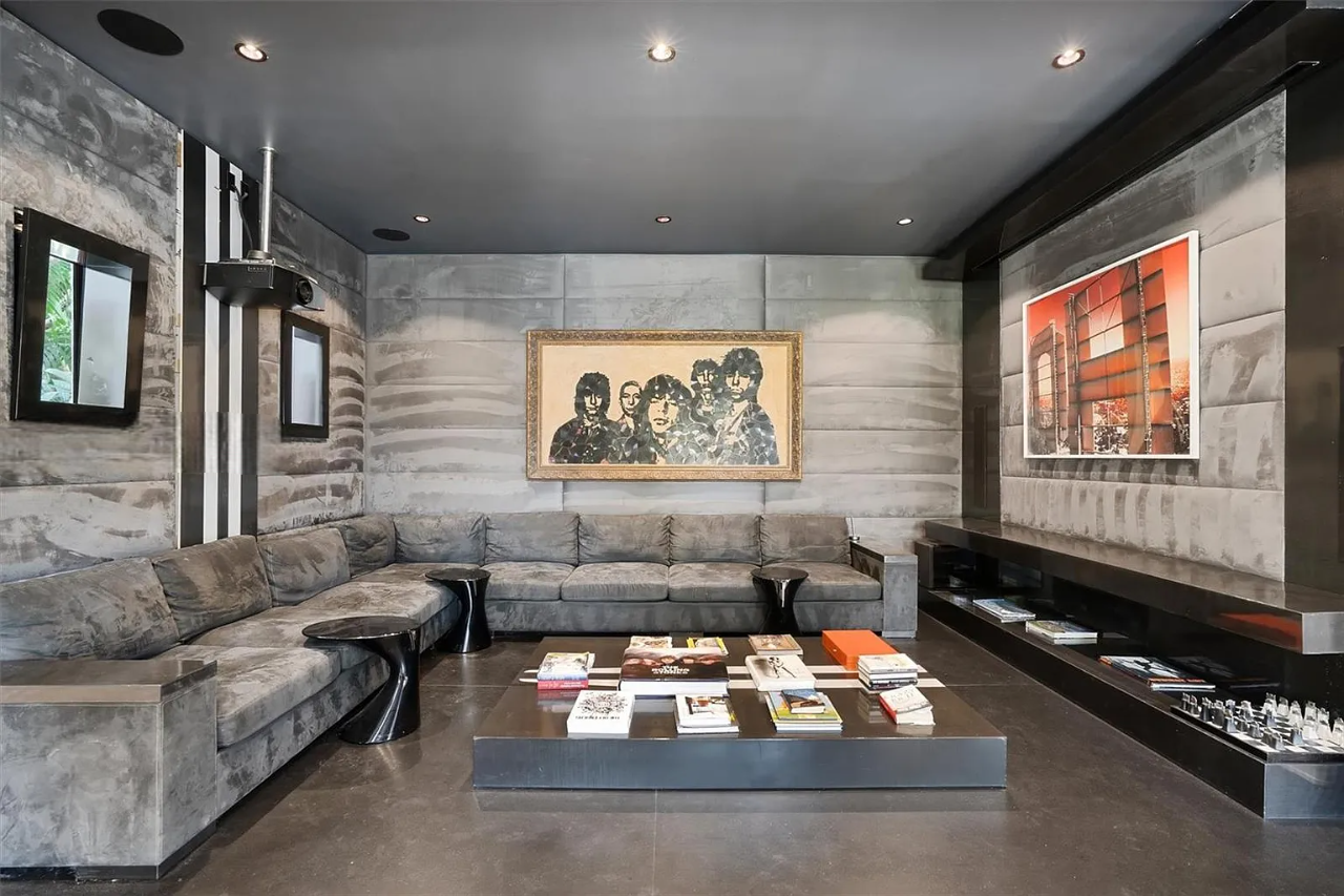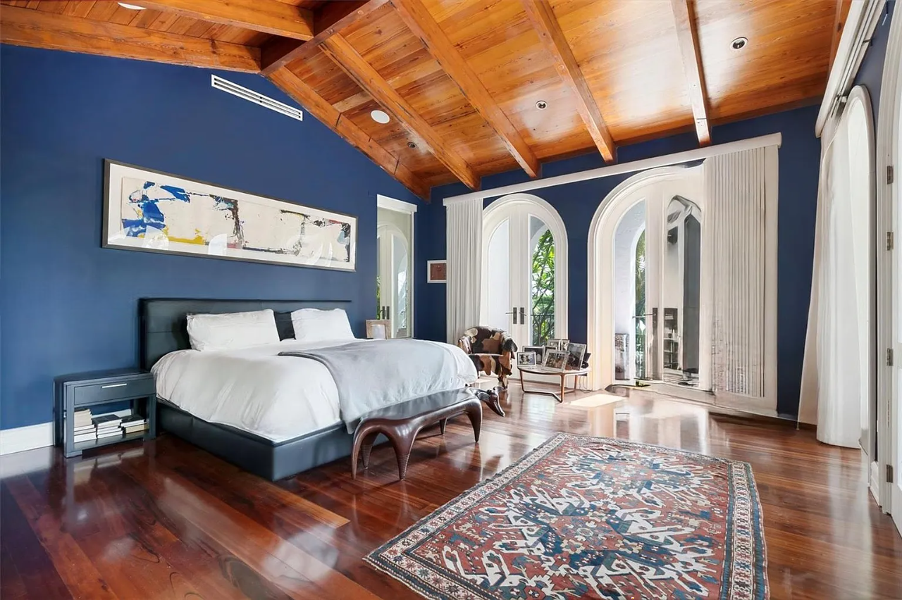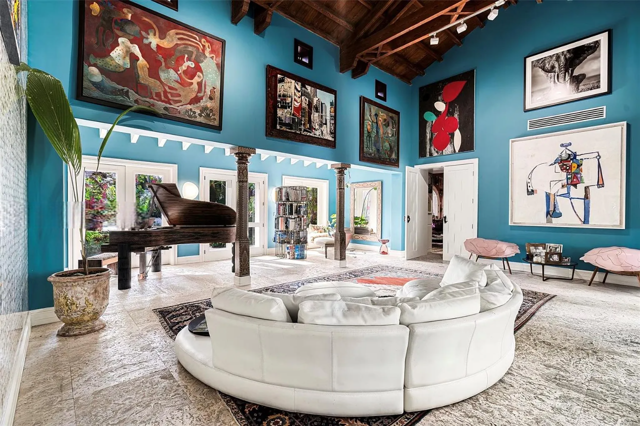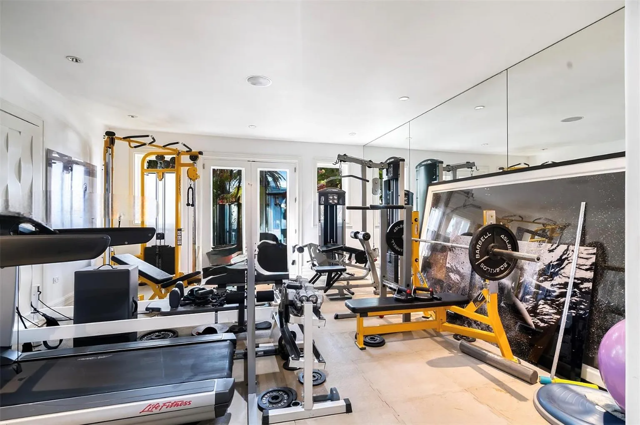 The property is replete with exceptional amenities, including a home theater, gym, steam rooms, bocce court, wine cellar, heated pool, spa, and a private beach, all set within a tranquil courtyard. Additional highlights include a separate guest house, advanced smart home technology, lighting controls, and solar panels, enhancing the estate’s allure. Surrounded by lush, exotic landscaping, this gated sanctuary epitomizes sophistication and seclusion in the exclusive, police-protected Palm Island community.