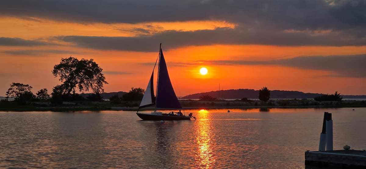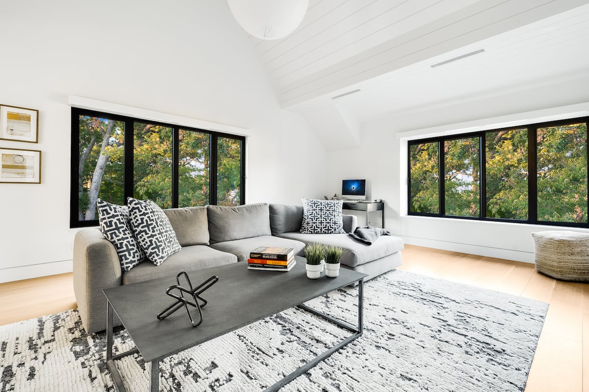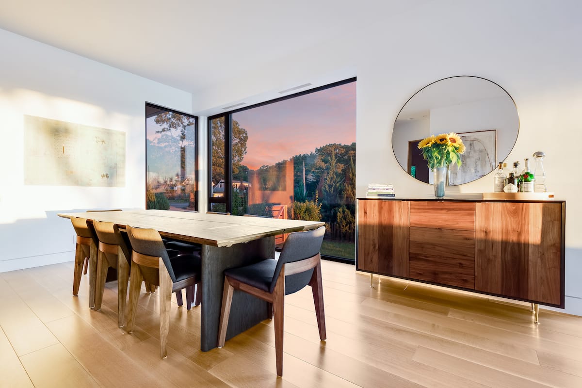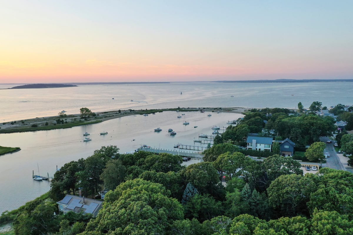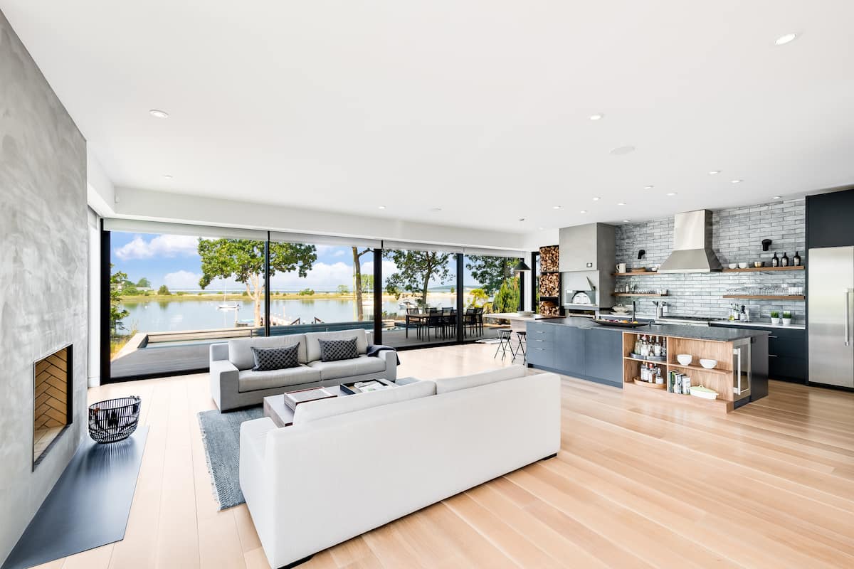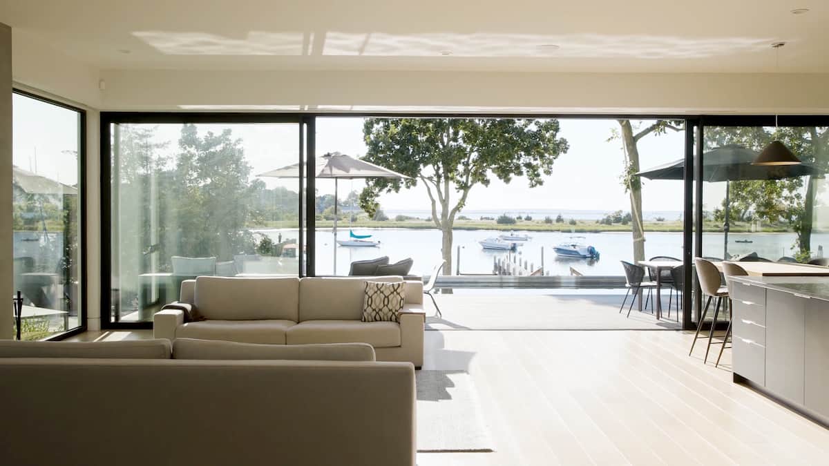 Enjoy the most spectacular sunsets over the water from this contemporary waterfront Sag Harbor home.
