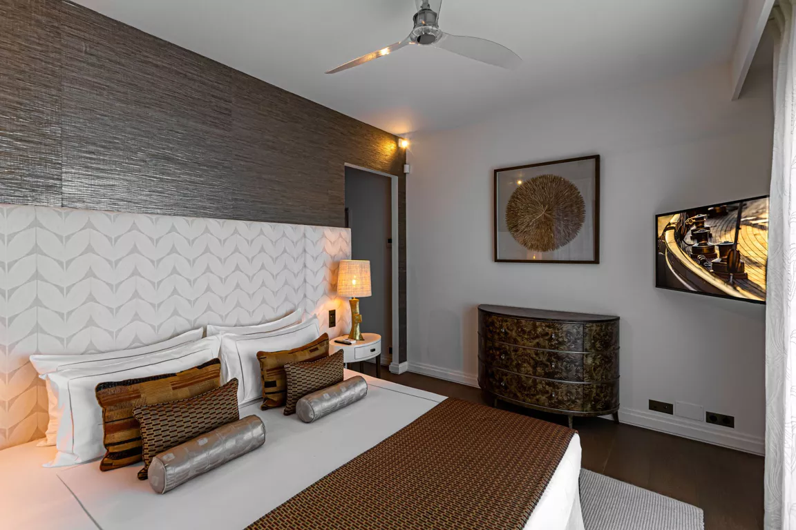 Start your day with awe-inspiring views of the turquoise waters, followed by a refreshing swim in the heated pool set amidst beautifully manicured gardens. Just a short five-minute stroll leads you to the pristine sands and crystal-clear waters of the Riviera. As evening falls, stay active in the fully equipped fitness room or savor a delightful barbecue dinner outdoors, dining under the stars in this idyllic setting.