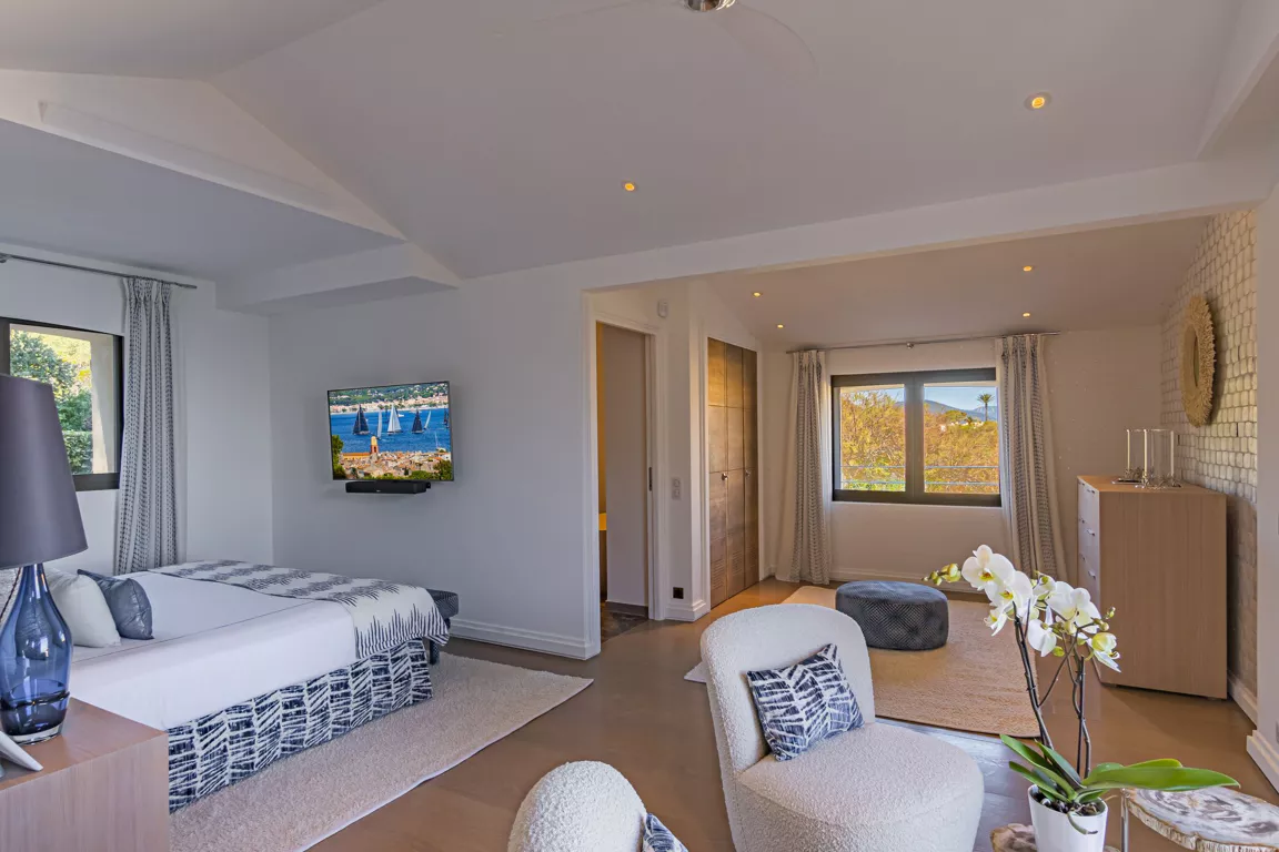 The Poutre Villa is a stunning retreat nestled on the tranquil Saint Tropez Peninsula along the famed French Riviera. This exquisite villa seamlessly combines contemporary elegance with the timeless charm of its natural surroundings. Guests enjoy exclusive private beach access and breathtaking panoramic views of the sparkling sea and lush landscape.