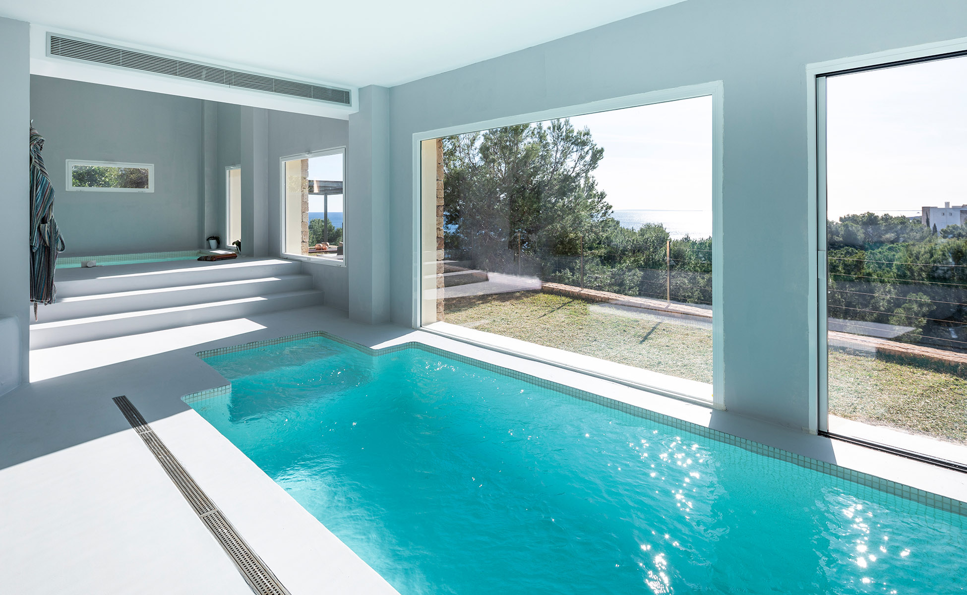 Spanning an impressive 700 m², this villa boasts three inviting swimming pools and occupies one of the largest plots in Roca Llisa, ensuring breathtaking sea views and a sense of privacy with very few neighboring homes in sight. This exceptional property offers the perfect setting for those seeking a tranquil yet sophisticated lifestyle in one of the most exclusive areas.
