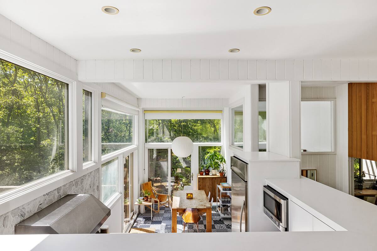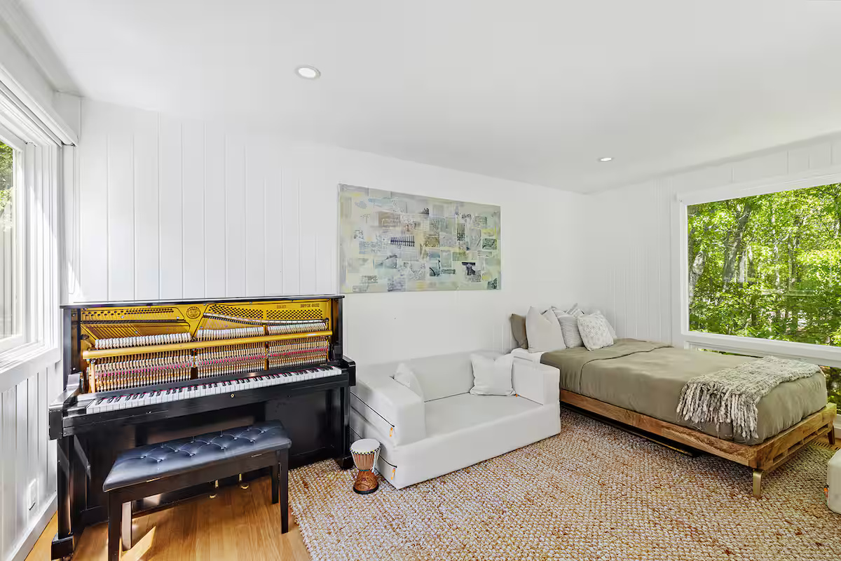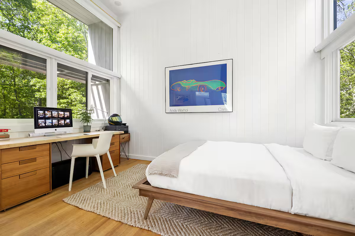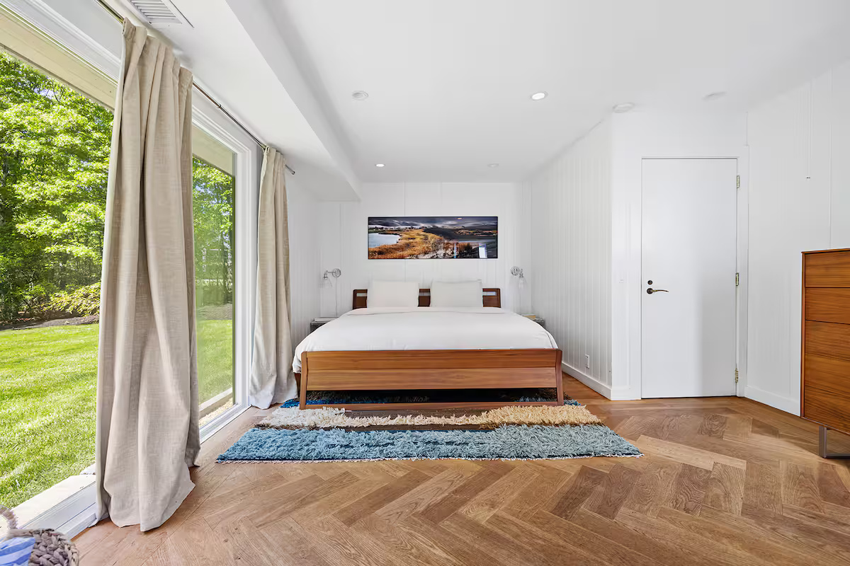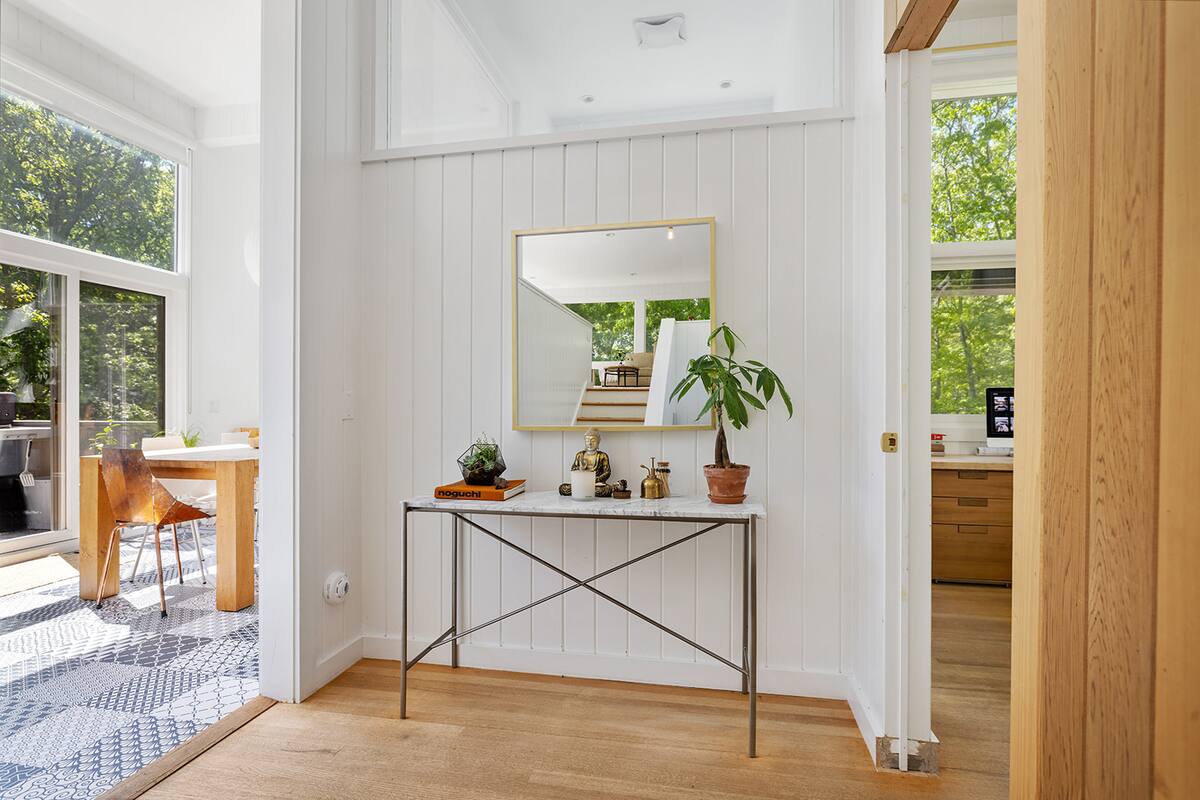 This Scandinavian-style home is expertly designed for an outdoor lifestyle. A true mid-century modern gem, this contemporary 3-bedroom, 2-bath residence rests on an expansive 1.7 acres, conveniently located just a bike ride from the vibrant Sag Harbor village and near various amenities, nature preserves, and pristine beaches.