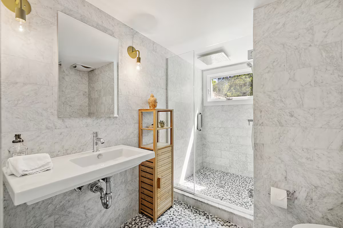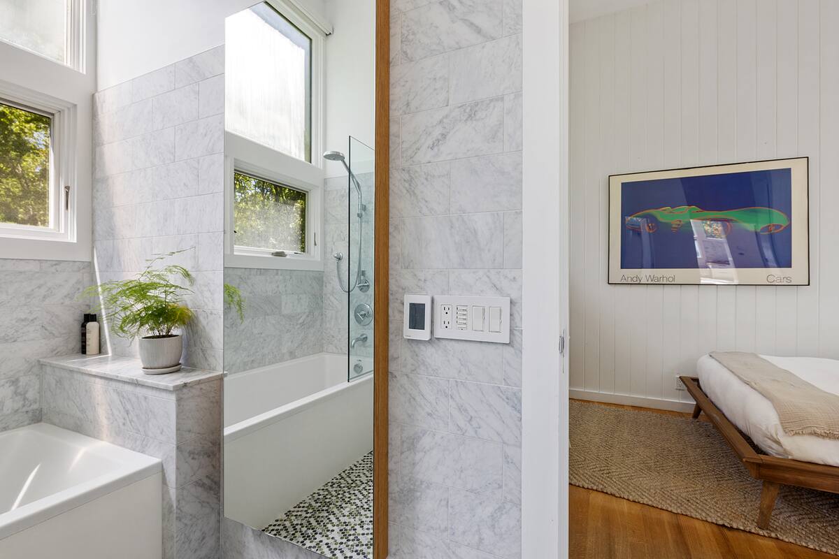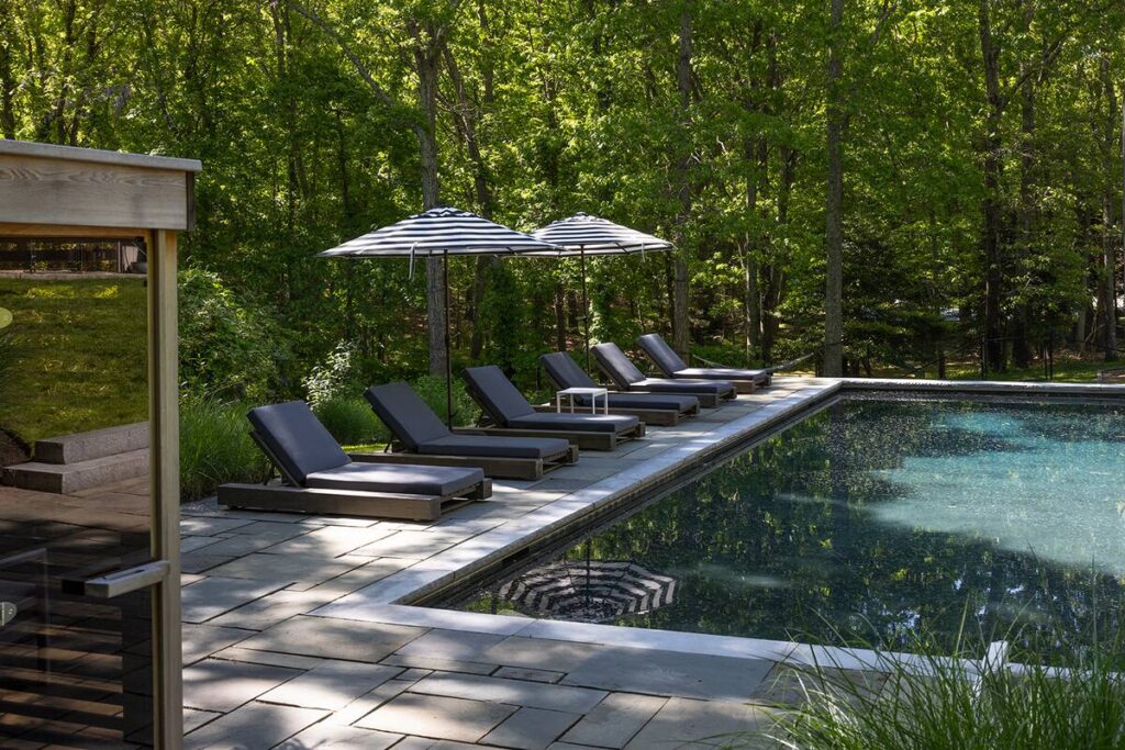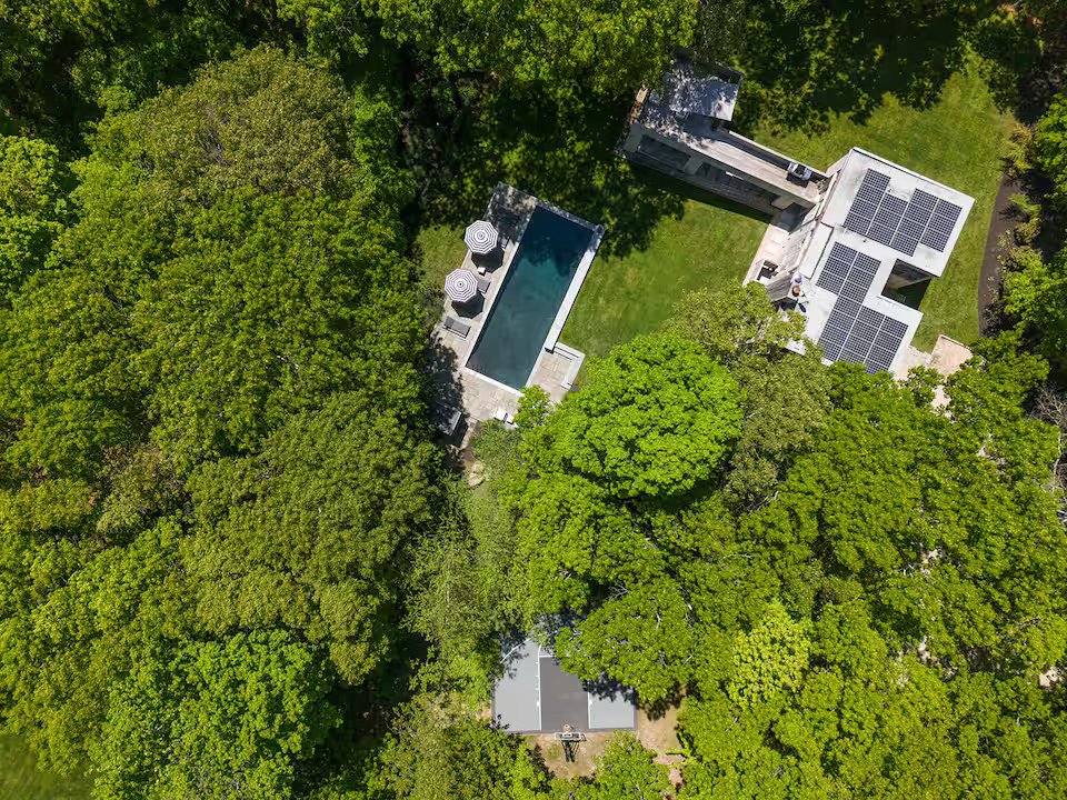 Nestled high above the forest, a multi-tiered deck and Skywalk guide you into a serene natural retreat. Here, a spacious heated saltwater Gunite pool awaits, offering the perfect spot to relax and enjoy the beauty of the woodland surroundings.
