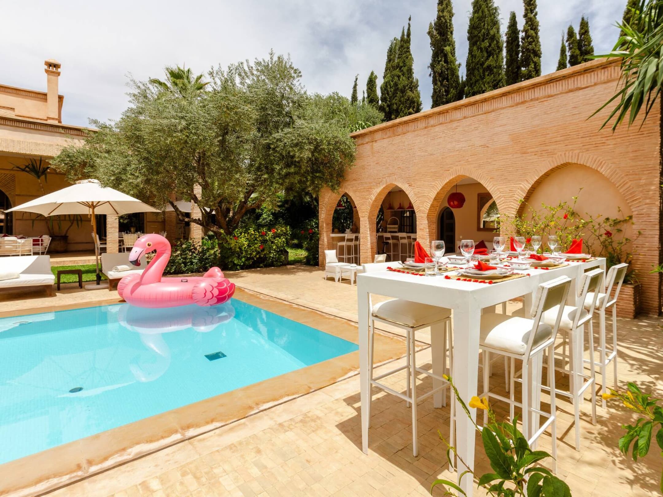 Nestled just seven minutes from the iconic Jemaa El Fna square in the Medina and the vibrant district of Guéliz, The Sally Villa offers an ideal location for your stay in Marrakech. Whether you’re gathering with friends or enjoying quality time with family, this villa provides a tranquil escape while being conveniently close to the city’s rich culture and modern amenities. Discover the perfect blend of nature, comfort, and accessibility.