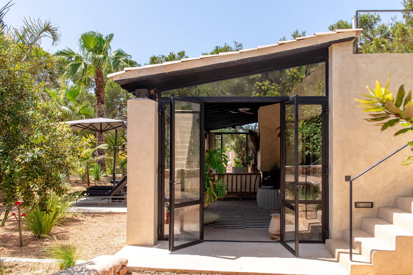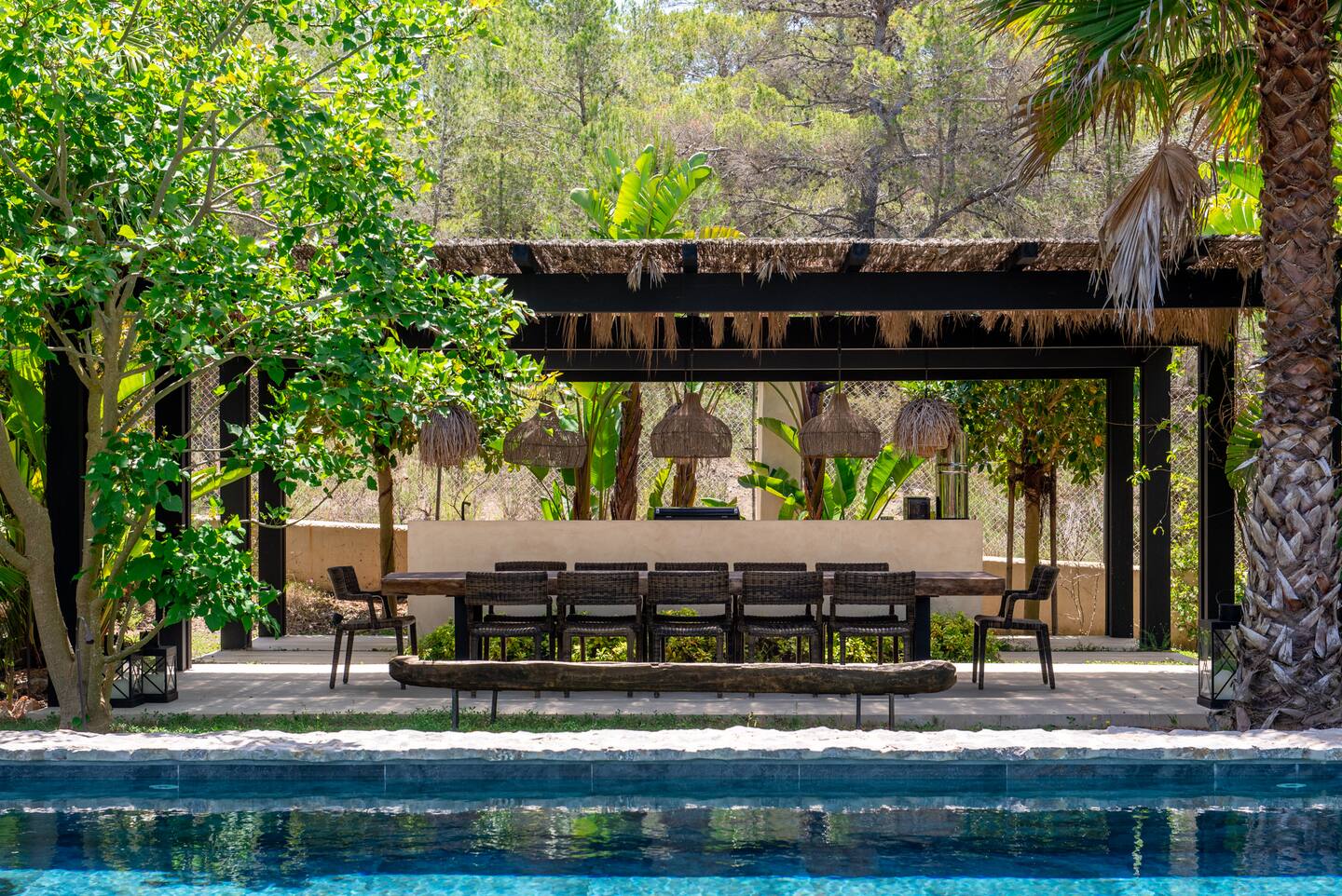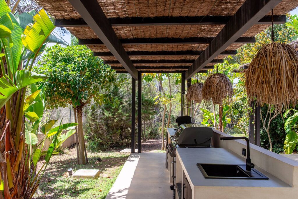 Escape to our exquisite Balinese-style villa in Ibiza, ideally located just 5-10 minutes from some of the island’s most breathtaking beaches, including Cala Bassa, Cala Codolar, Cala Escondida, and Cala Conta. This private oasis offers easy access, with Ubers and taxis readily available to take you directly to the house. Immerse yourself in luxury as you enjoy a spectacular pool, an inviting outdoor lounge surrounded by lush tropical gardens, a BBQ area for delightful al fresco dining, and a traditional hammam for rejuvenation.