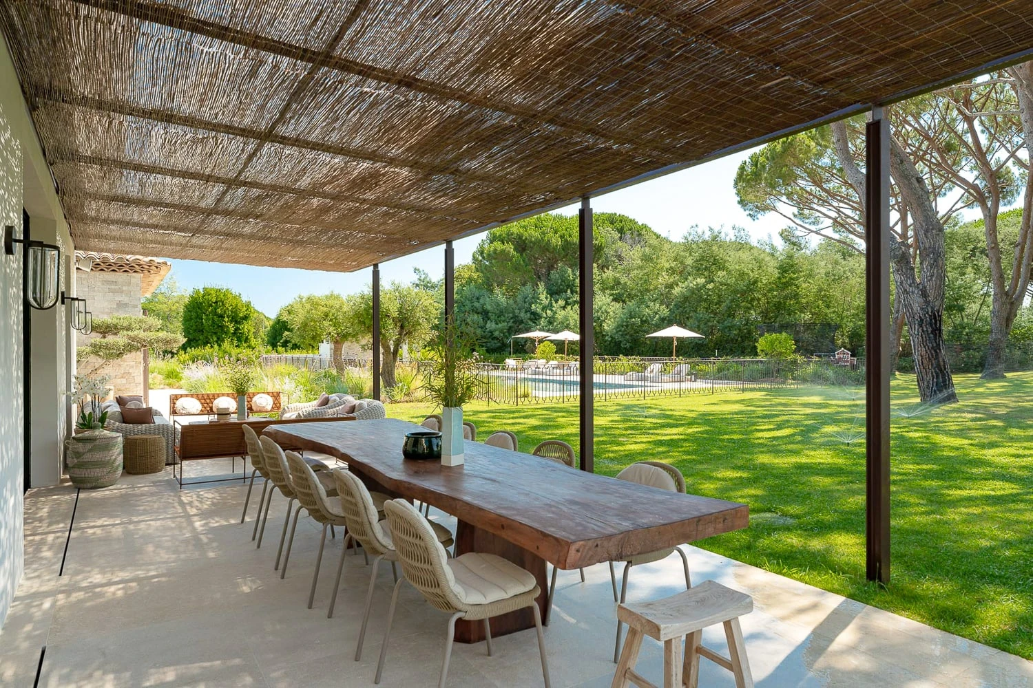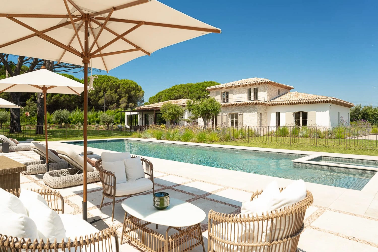 Experience pure tranquility just a short five-minute stroll from the vibrant and famous Pampelonne Beach. The Sesha Villa offers the perfect blend of peaceful seclusion and easy access to the lively coastal atmosphere, making it an ideal retreat for those seeking both relaxation and excitement.