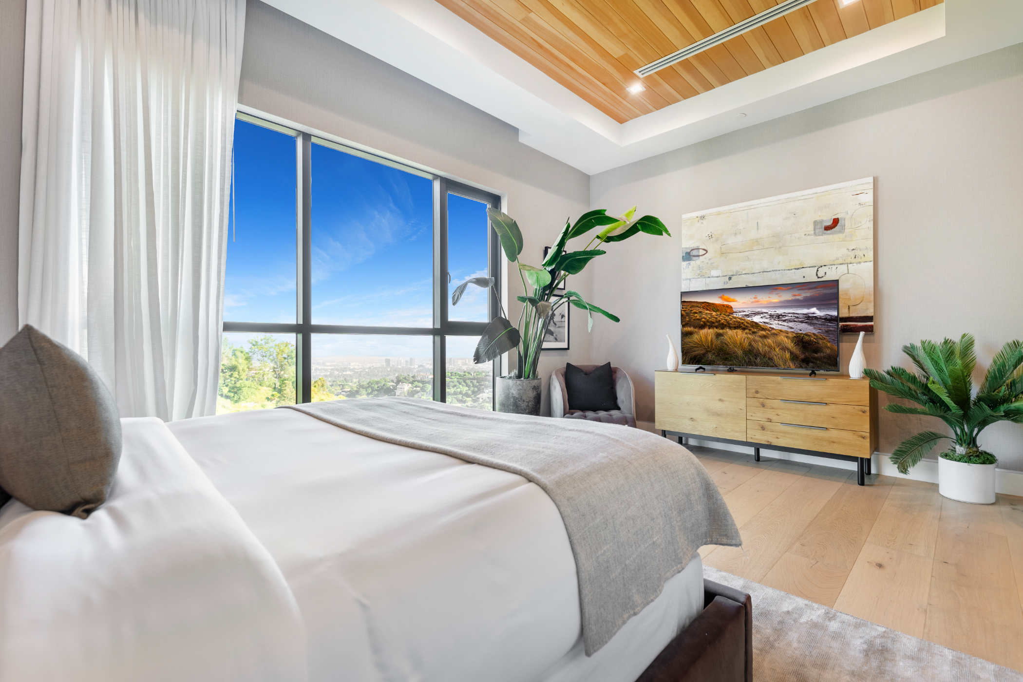 Step into Bel-Air Paradise, a stunning modern estate crafted by the renowned Ramtin Ray Nosrati. Located in one of Los Angeles’ most prestigious neighborhoods, this private sanctuary offers unparalleled security and tranquility, with a gated driveway and beautifully landscaped grounds. The impressive entryway, adorned with expansive glass walls, warm wood accents, and a lush living wall, introduces the home’s contemporary yet inviting design. Inside, soaring ceilings, exquisite finishes, and breathtaking ocean and city views create a seamless blend of indoor and outdoor living. The gourmet kitchen is a culinary masterpiece, boasting state-of-the-art appliances, a restaurant-style walk-in refrigerator, and an expansive central island. Designed for entertaining, the home also features a travertine-clad bar and an elegant wine room with a dedicated tasting area, epitomizing luxury and sophistication.