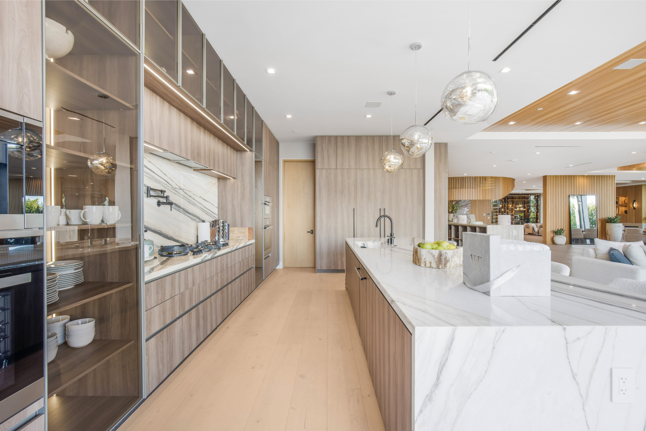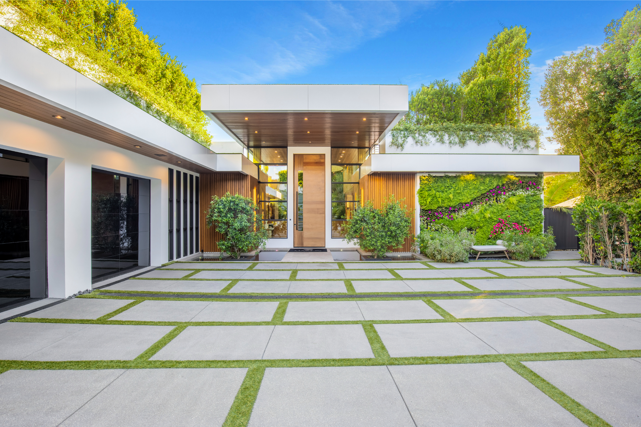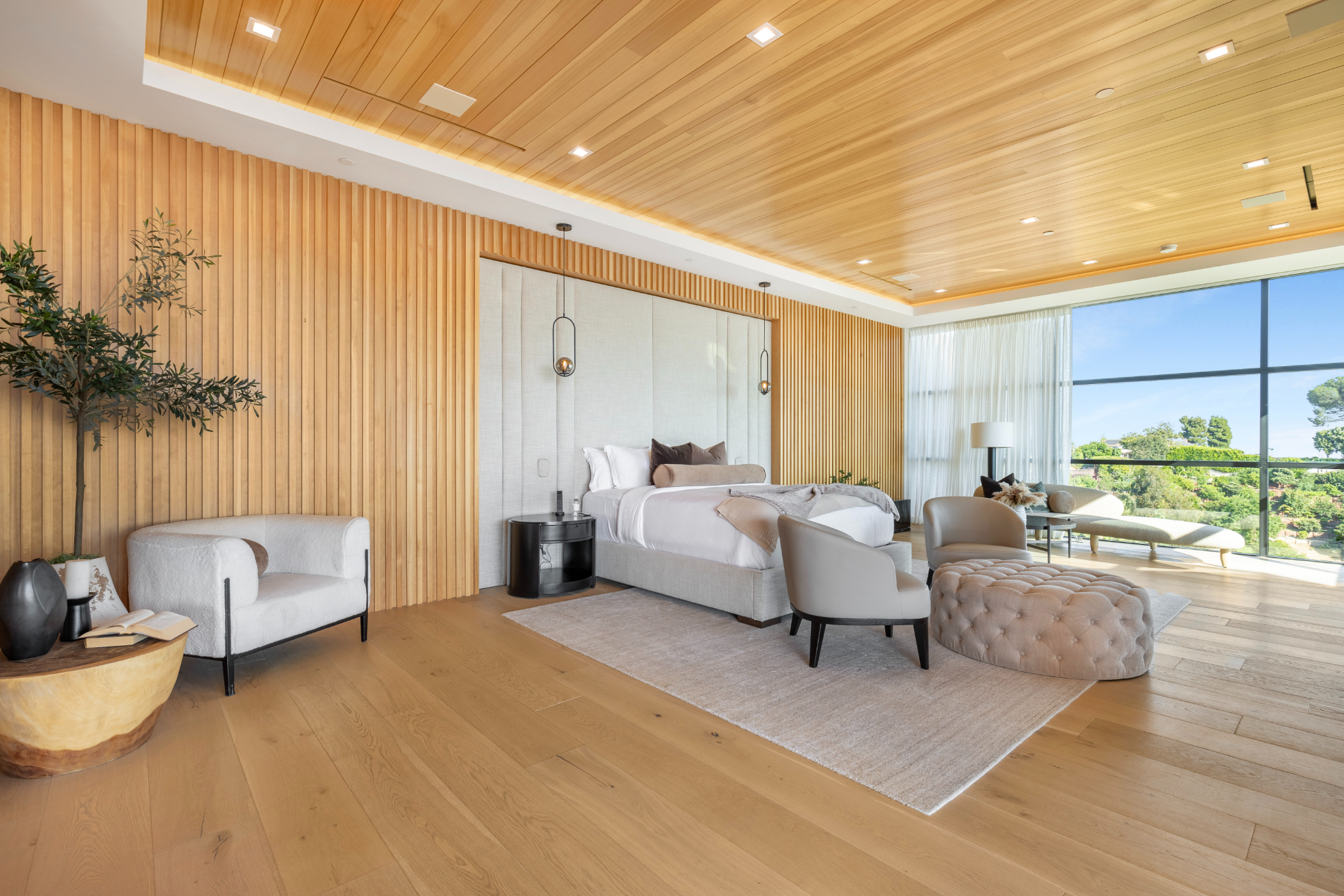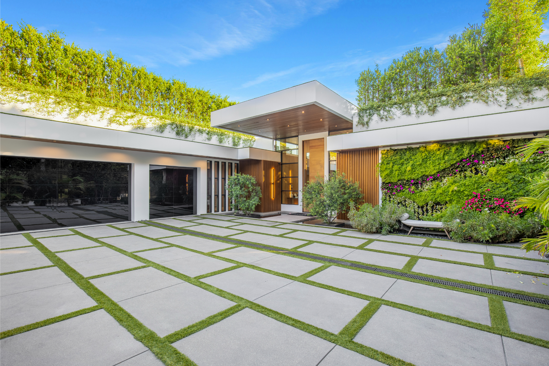 Step into Bel-Air Paradise, a stunning modern estate crafted by the renowned Ramtin Ray Nosrati. Located in one of Los Angeles’ most prestigious neighborhoods, this private sanctuary offers unparalleled security and tranquility, with a gated driveway and beautifully landscaped grounds. The impressive entryway, adorned with expansive glass walls, warm wood accents, and a lush living wall, introduces the home’s contemporary yet inviting design. Inside, soaring ceilings, exquisite finishes, and breathtaking ocean and city views create a seamless blend of indoor and outdoor living. The gourmet kitchen is a culinary masterpiece, boasting state-of-the-art appliances, a restaurant-style walk-in refrigerator, and an expansive central island. Designed for entertaining, the home also features a travertine-clad bar and an elegant wine room with a dedicated tasting area, epitomizing luxury and sophistication.