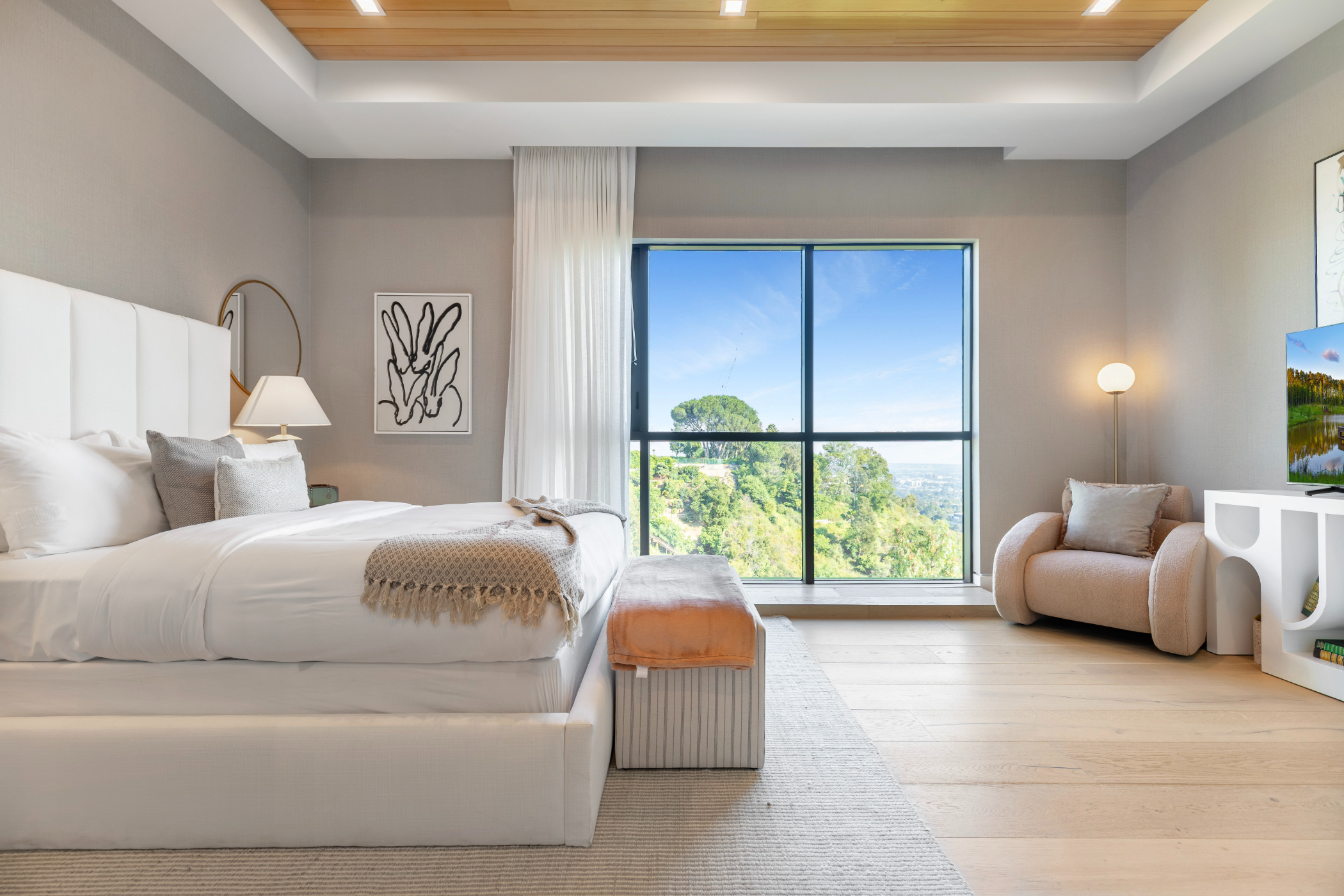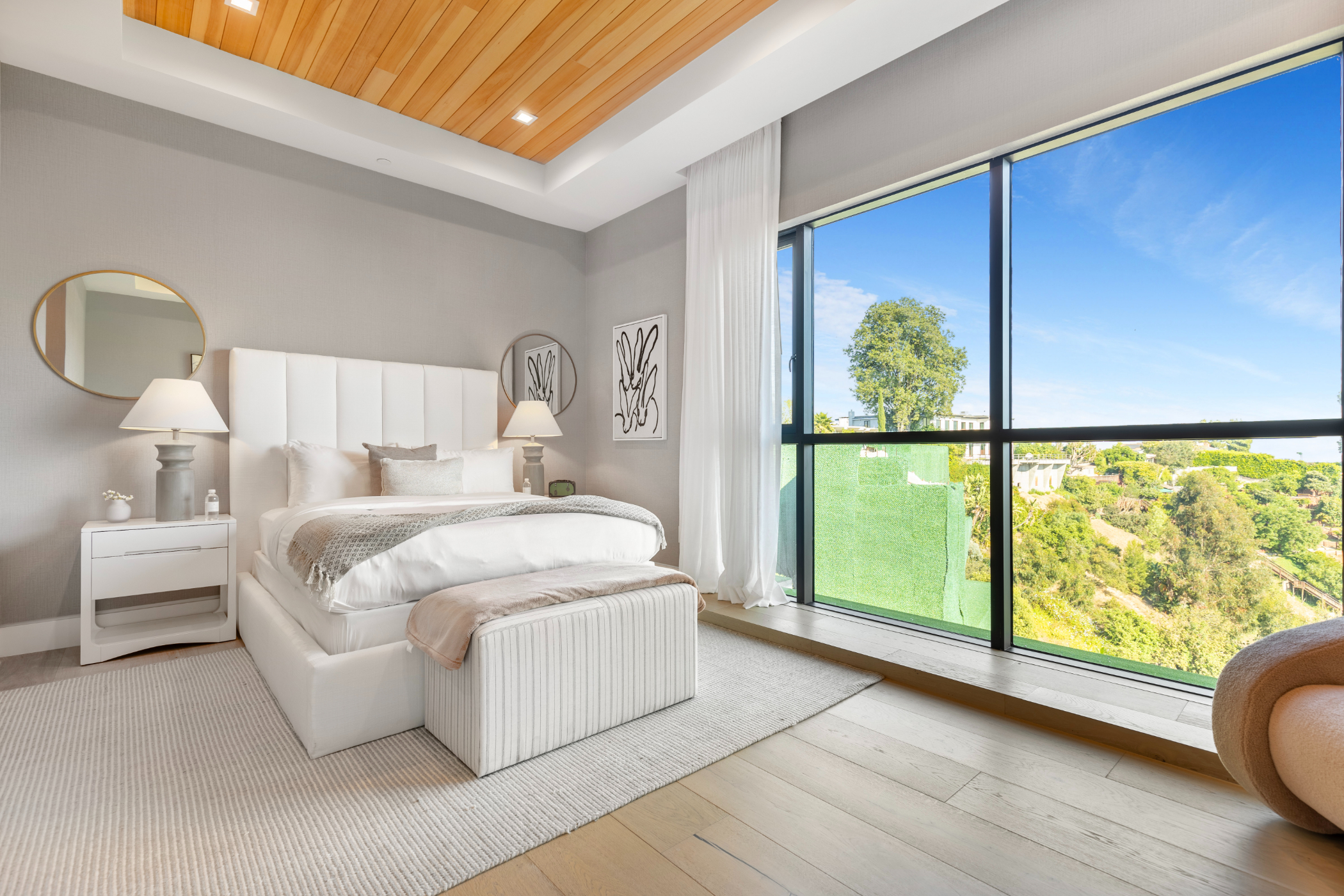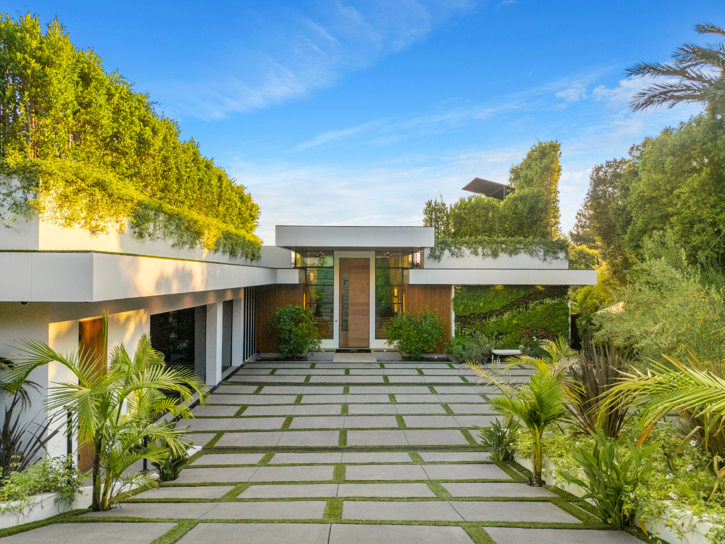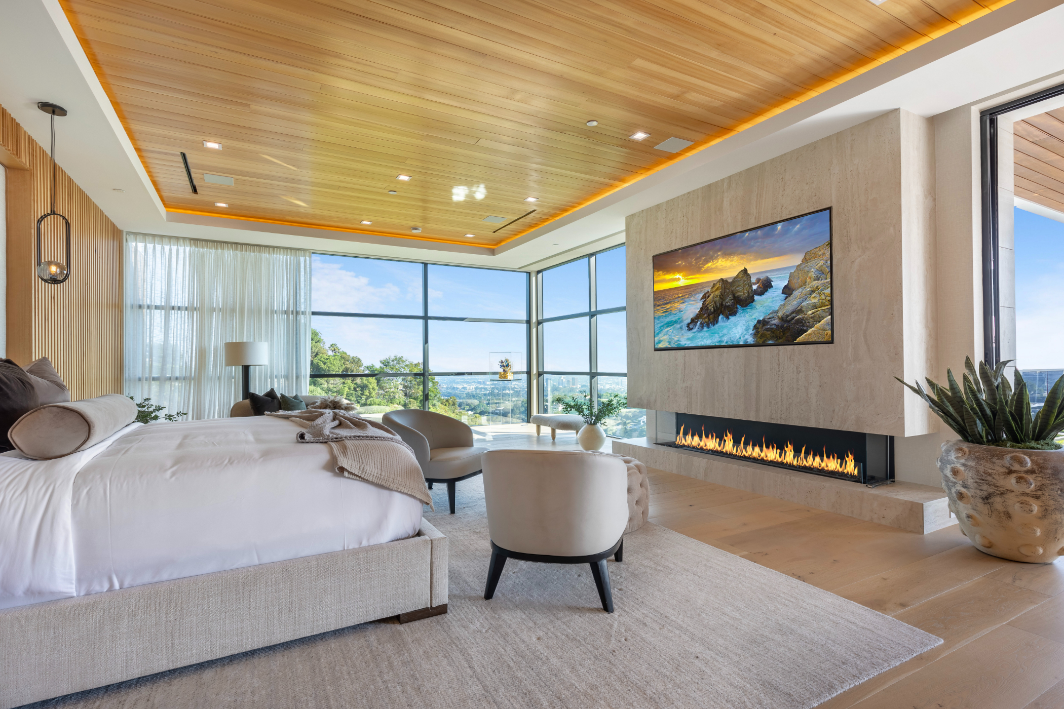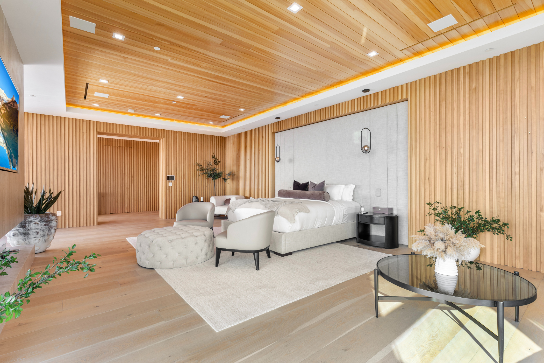 Step into Bel-Air Paradise, a stunning modern estate crafted by the renowned Ramtin Ray Nosrati. Located in one of Los Angeles’ most prestigious neighborhoods, this private sanctuary offers unparalleled security and tranquility, with a gated driveway and beautifully landscaped grounds. The impressive entryway, adorned with expansive glass walls, warm wood accents, and a lush living wall, introduces the home’s contemporary yet inviting design. Inside, soaring ceilings, exquisite finishes, and breathtaking ocean and city views create a seamless blend of indoor and outdoor living. The gourmet kitchen is a culinary masterpiece, boasting state-of-the-art appliances, a restaurant-style walk-in refrigerator, and an expansive central island. Designed for entertaining, the home also features a travertine-clad bar and an elegant wine room with a dedicated tasting area, epitomizing luxury and sophistication.