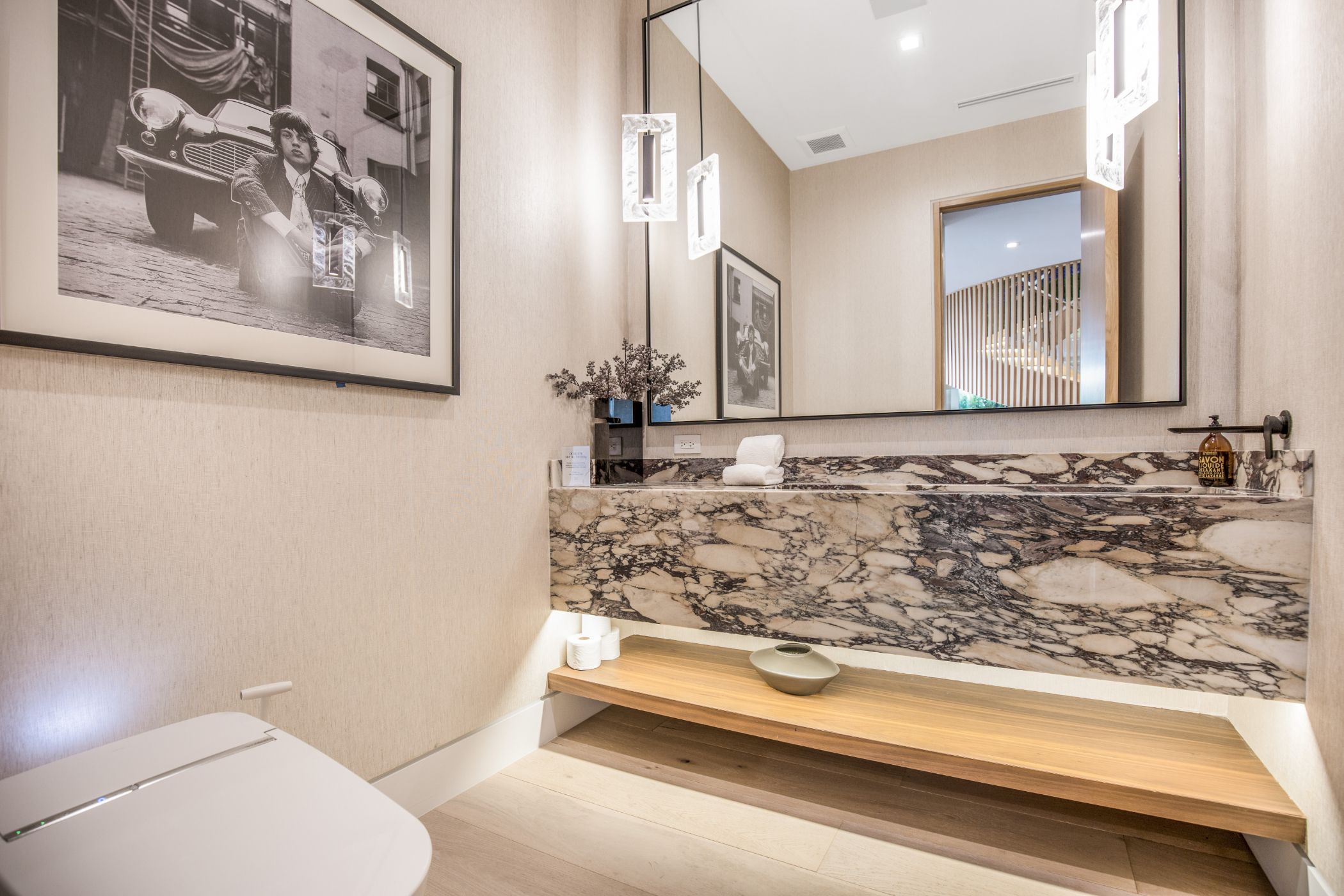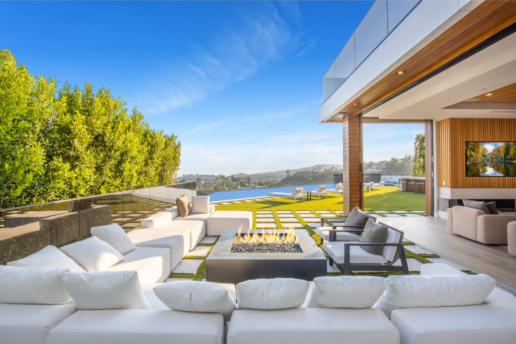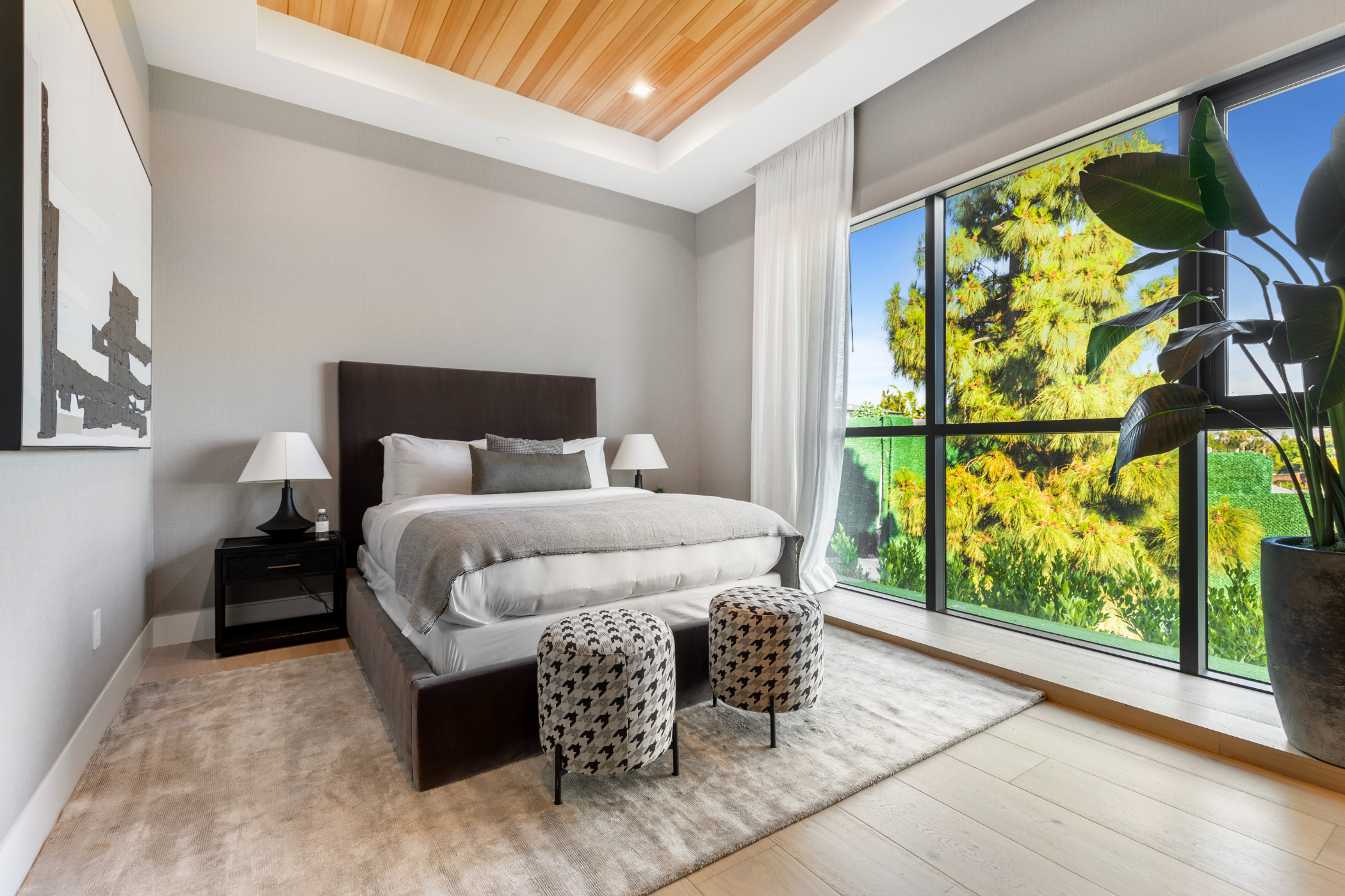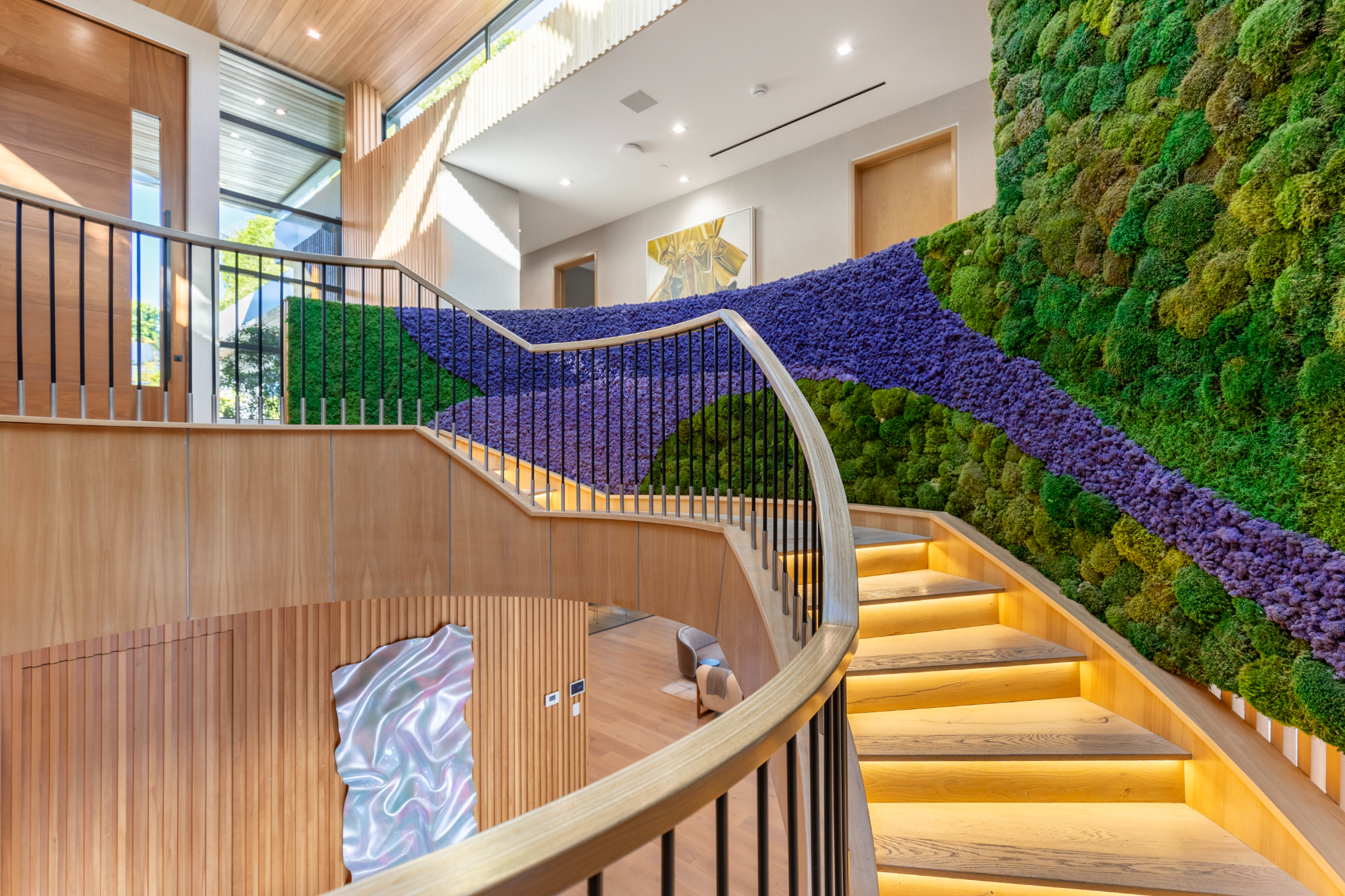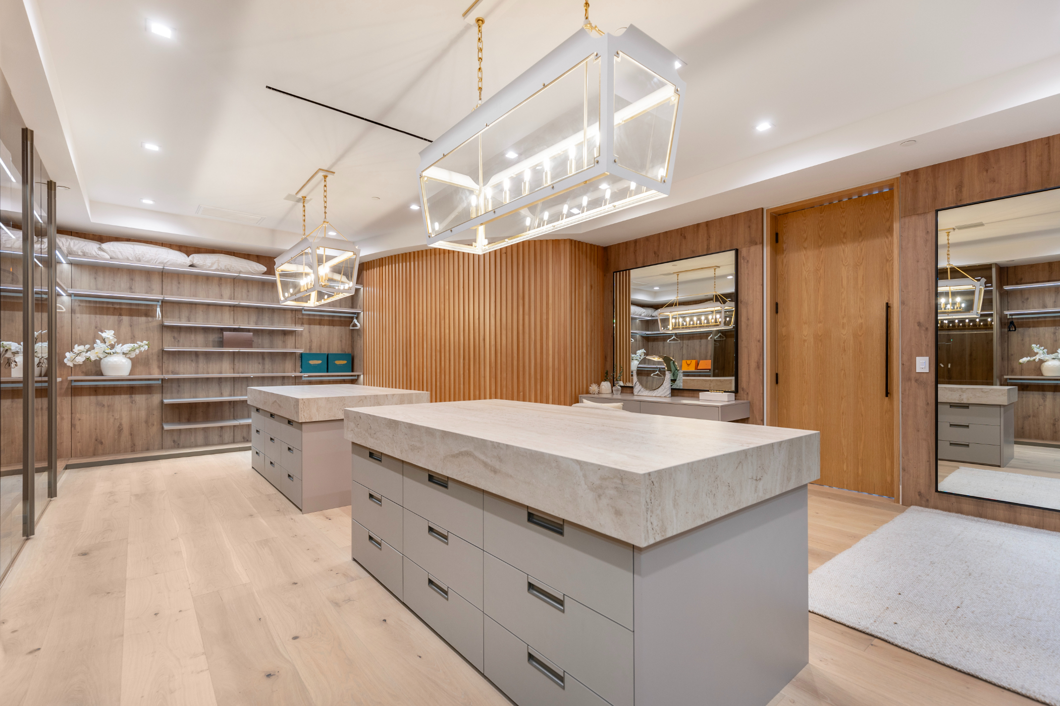 Step into Bel-Air Paradise, a stunning modern estate crafted by the renowned Ramtin Ray Nosrati. Located in one of Los Angeles’ most prestigious neighborhoods, this private sanctuary offers unparalleled security and tranquility, with a gated driveway and beautifully landscaped grounds. The impressive entryway, adorned with expansive glass walls, warm wood accents, and a lush living wall, introduces the home’s contemporary yet inviting design. Inside, soaring ceilings, exquisite finishes, and breathtaking ocean and city views create a seamless blend of indoor and outdoor living. The gourmet kitchen is a culinary masterpiece, boasting state-of-the-art appliances, a restaurant-style walk-in refrigerator, and an expansive central island. Designed for entertaining, the home also features a travertine-clad bar and an elegant wine room with a dedicated tasting area, epitomizing luxury and sophistication.