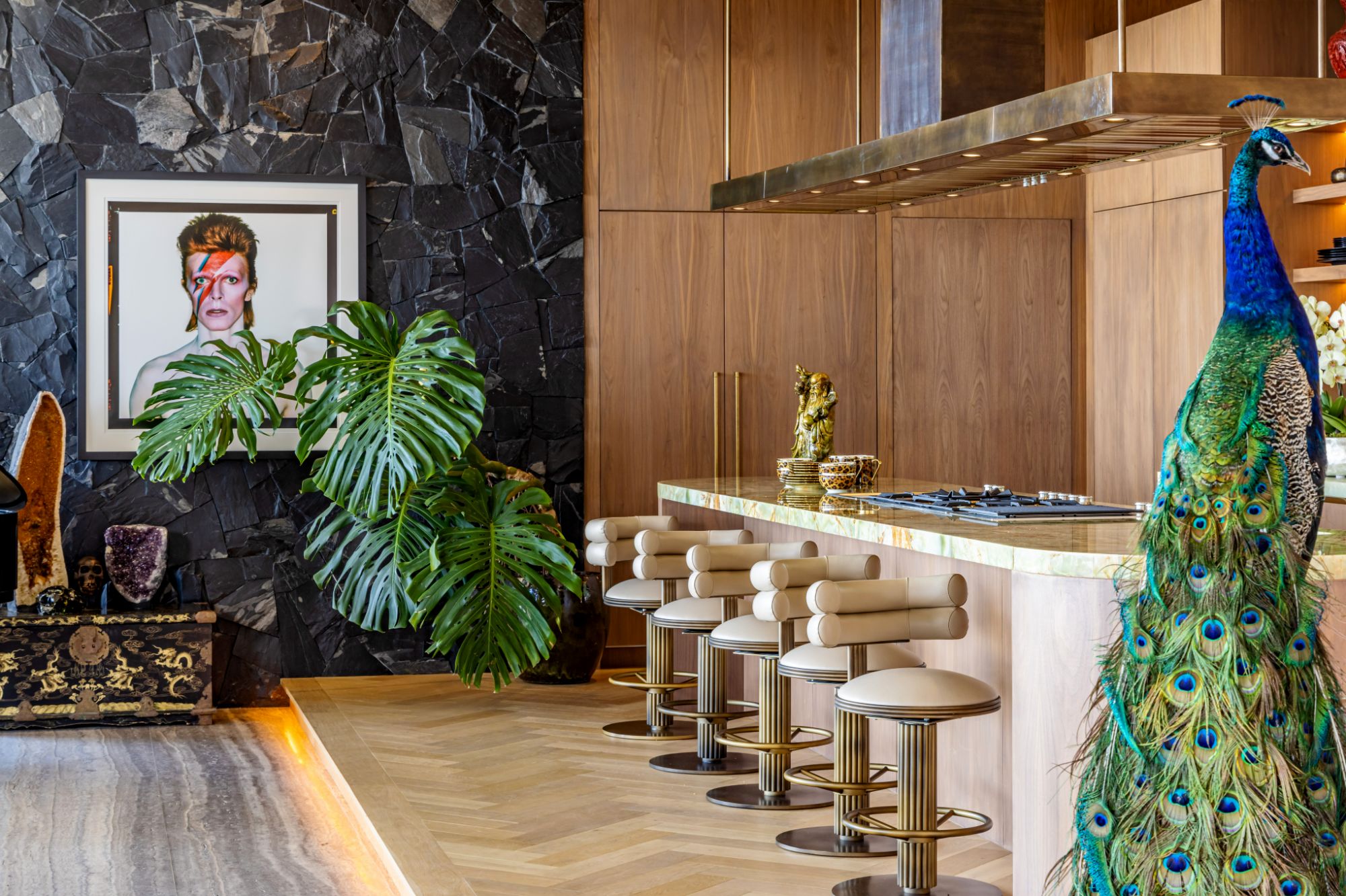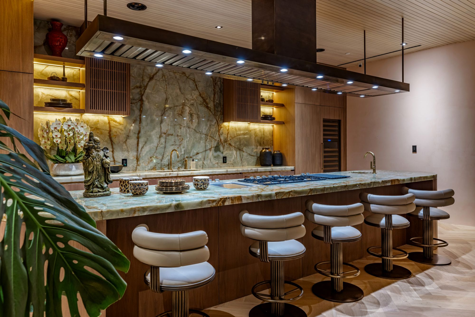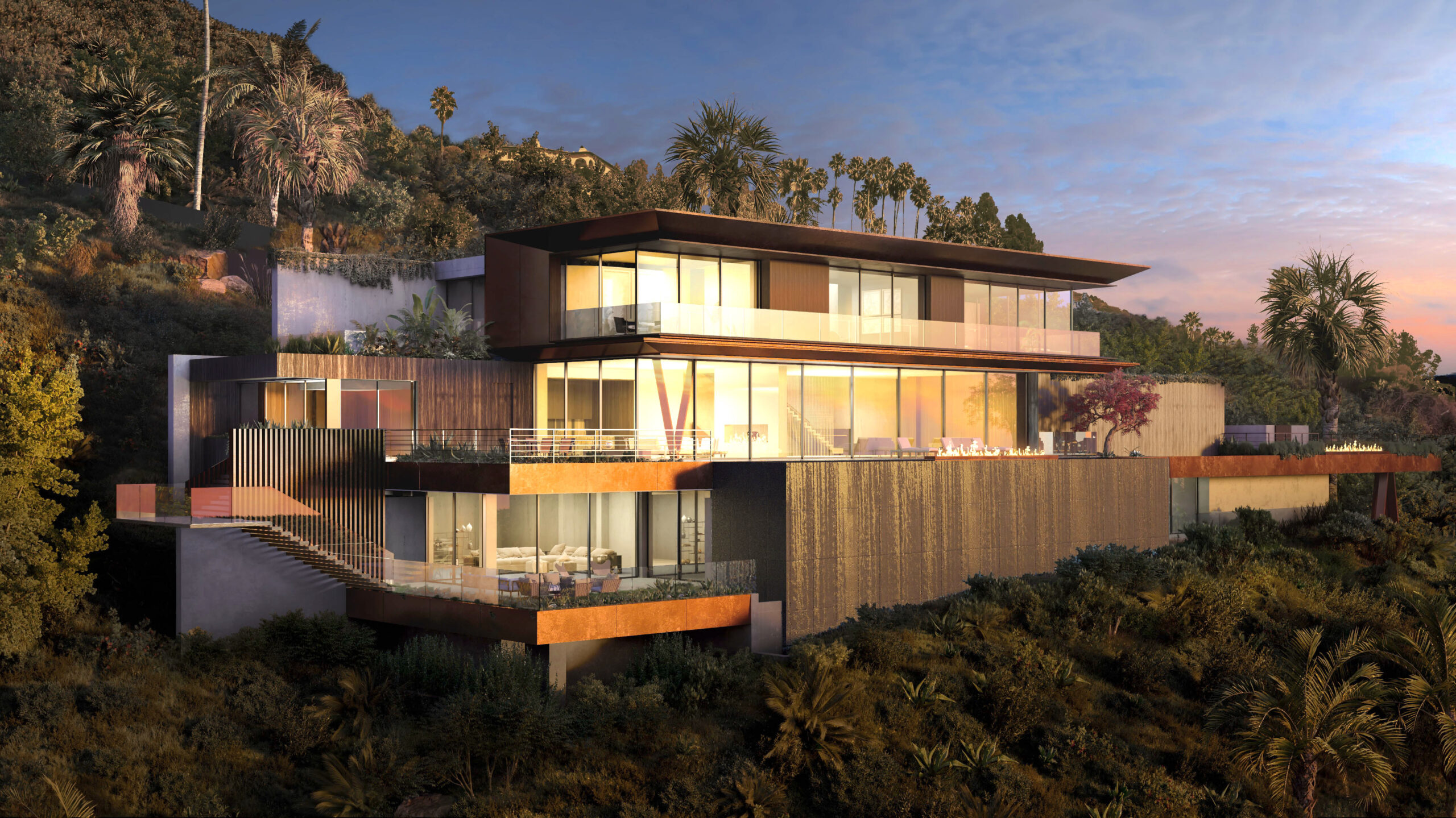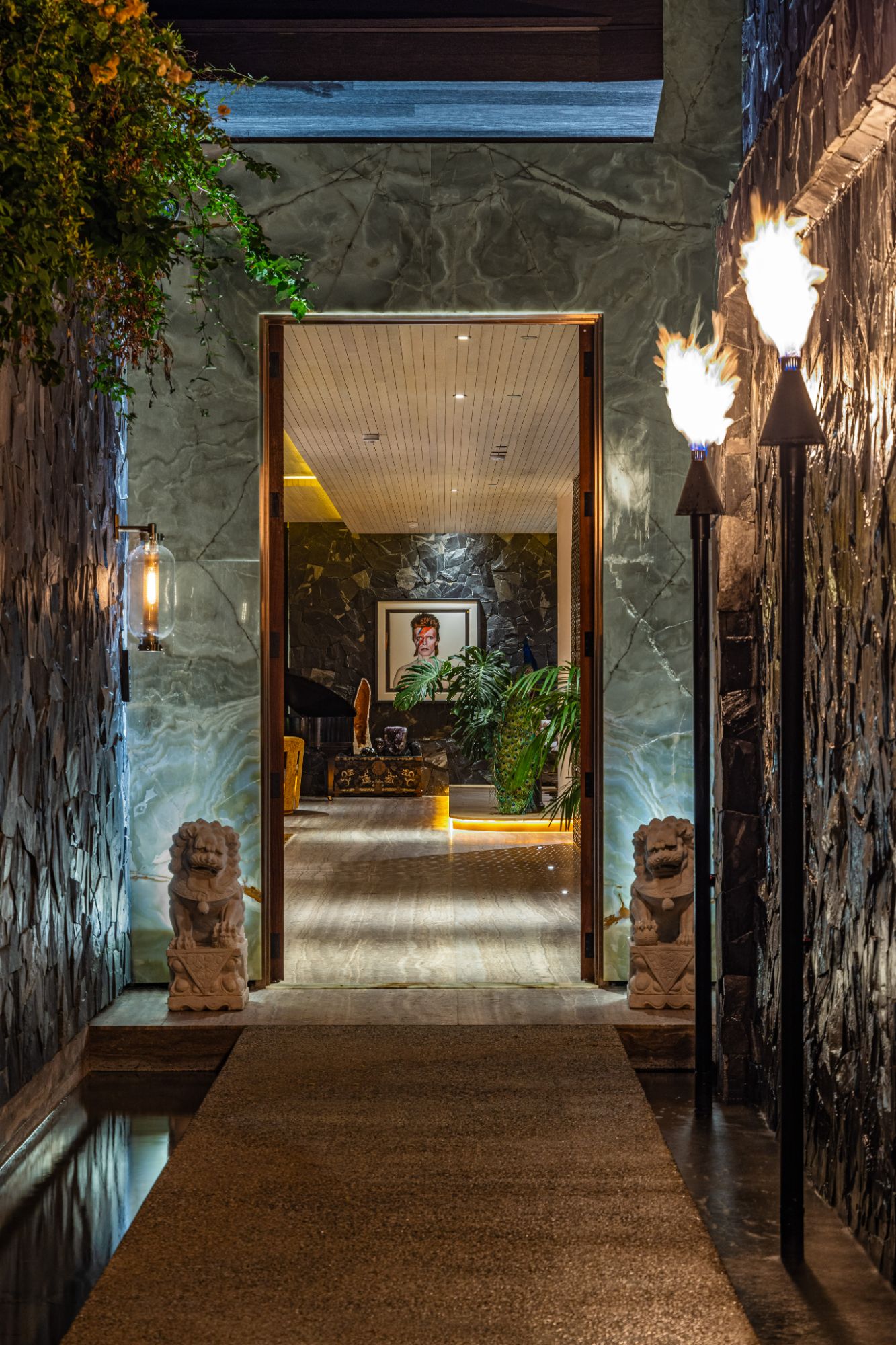 Meticulously constructed over seven years, this architectural paradise represents a pinnacle of modern design by Vantage, where every detail was curated for the most discerning eye. The residence is a masterclass in texture and form, wrapped in a bronze patina and charred Shou Sugi Ban wood that seamlessly blends with black Brazilian slate. Warm organic materials are interweaved with lush, integrated landscaping, while massive walls of floor-to-ceiling glass dissolve the boundary between the interior and the natural world. This is a trophy estate inspired by global aesthetics—from the soul of Brazil to the serenity of Asia—and infused with rock ‘n’ roll energy and the legendary spirit of the Sunset Strip.