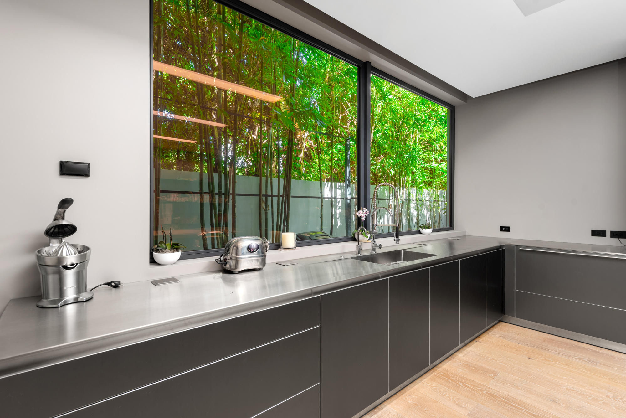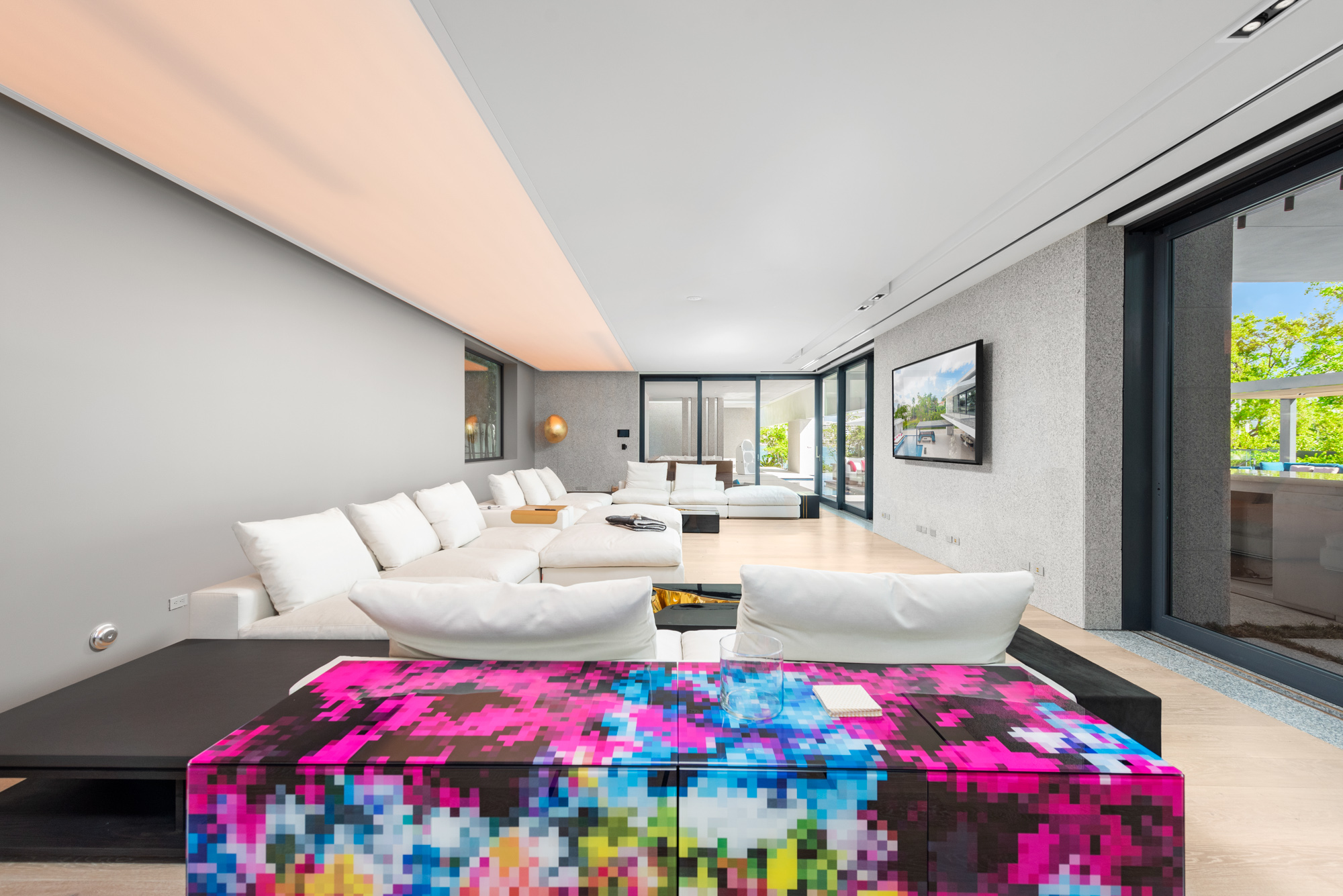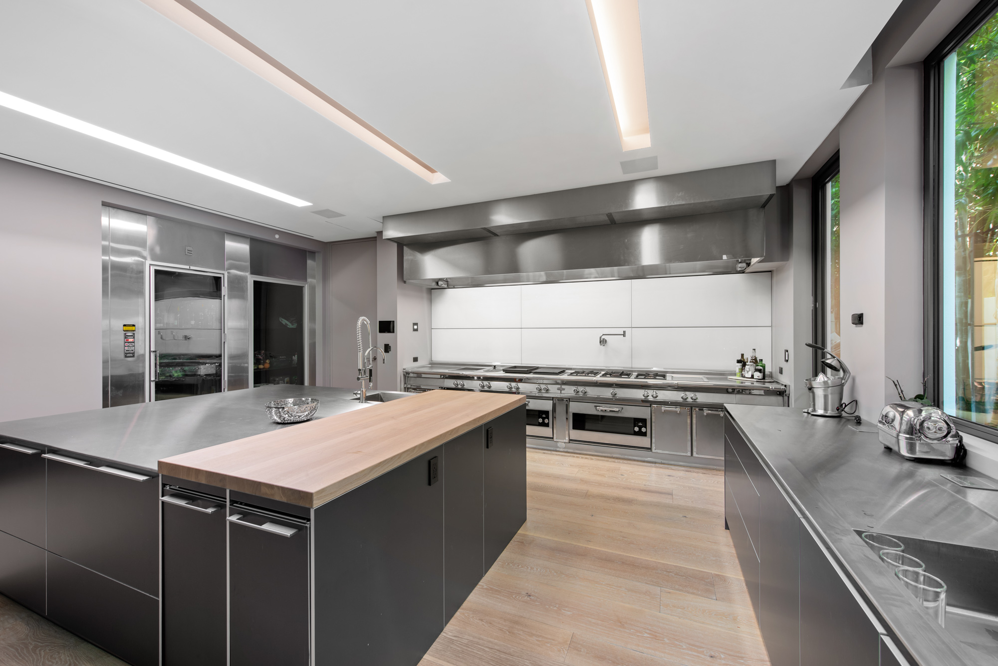 Transition effortlessly to the lavish amenities through retractable Peetz glass doors that open to a resort-style pool, gym, sauna, bar, and beautifully landscaped garden. Additionally, experience the charm of a reimagined Walter De Garmo guest house from the 1920s, meticulously updated to meet the highest standards of luxury and comfort.