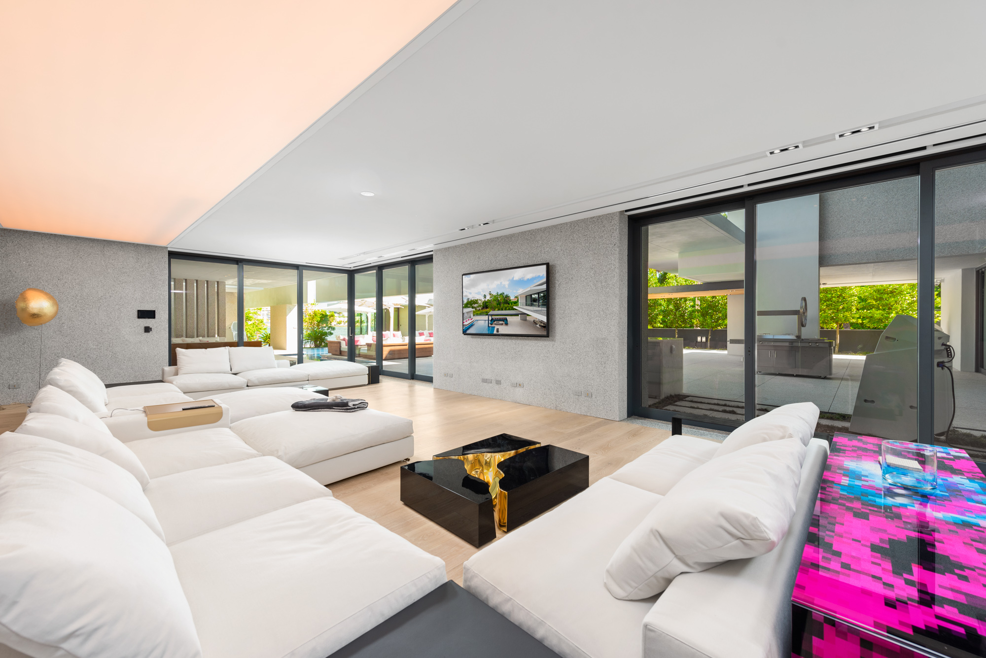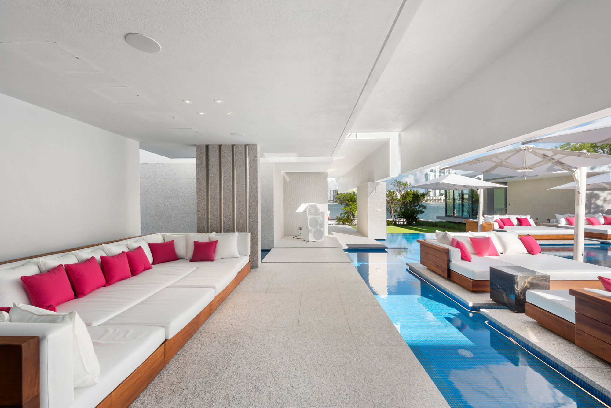 Introducing A SAOTA Art of Work, a remarkable fusion of design, engineering, and opulence. This stunning dual-estate on Star Island spans nearly 23,000 square feet, showcasing meticulously crafted interiors and an elegant aesthetic. Upon entry, guests are greeted by reflective ponds and concrete privacy screens that lead to a grand salon featuring 21-foot ceilings. The social spaces are enhanced by acoustic-paneled walls, a sophisticated bar and lounge with views of the Olive Tree, an industrial-chic kitchen designed for a Michelin-star chef, and two dedicated media rooms.