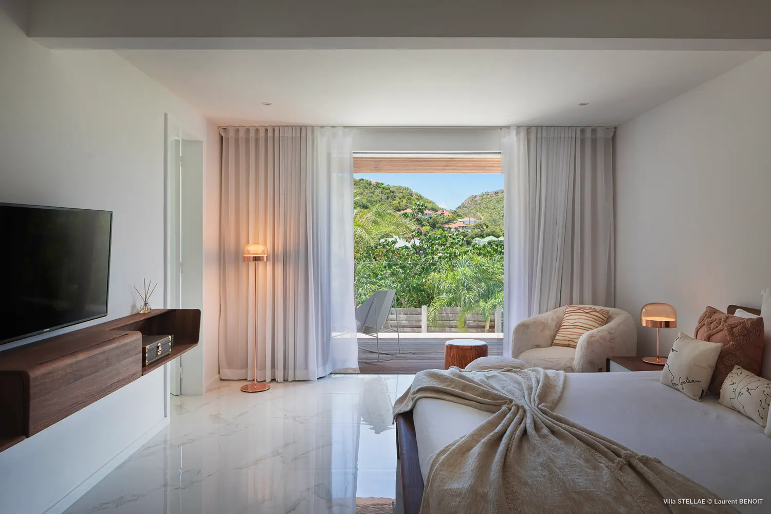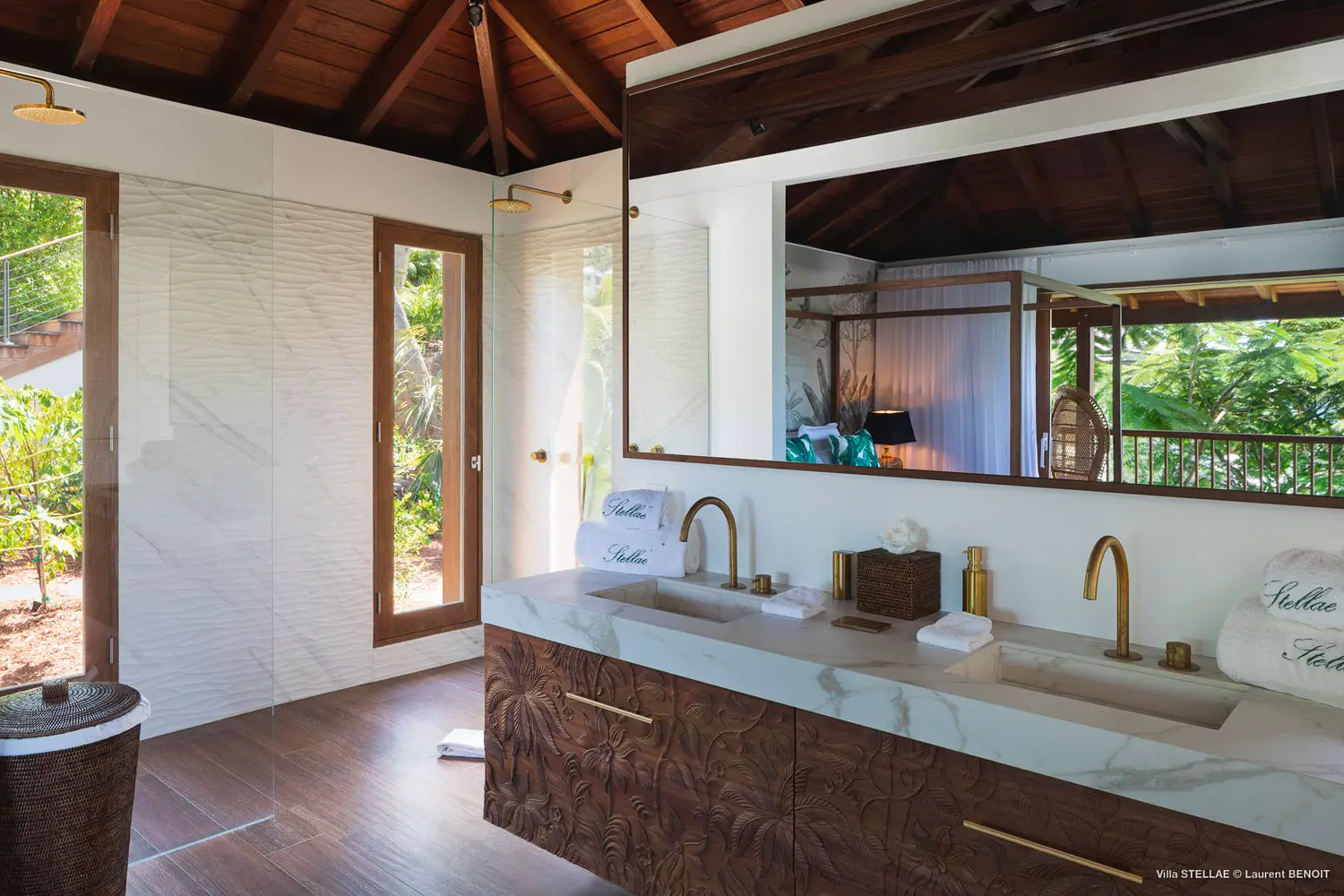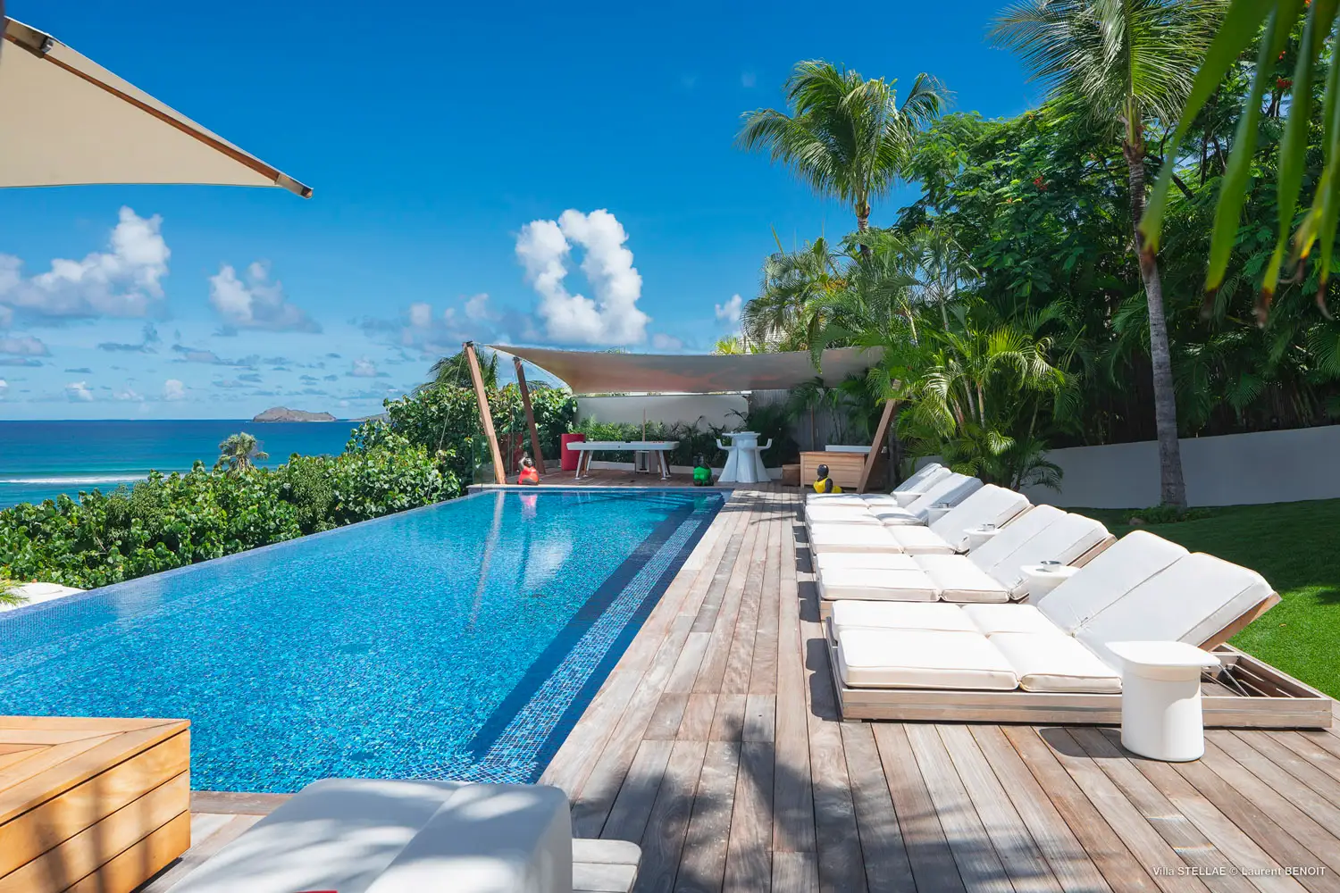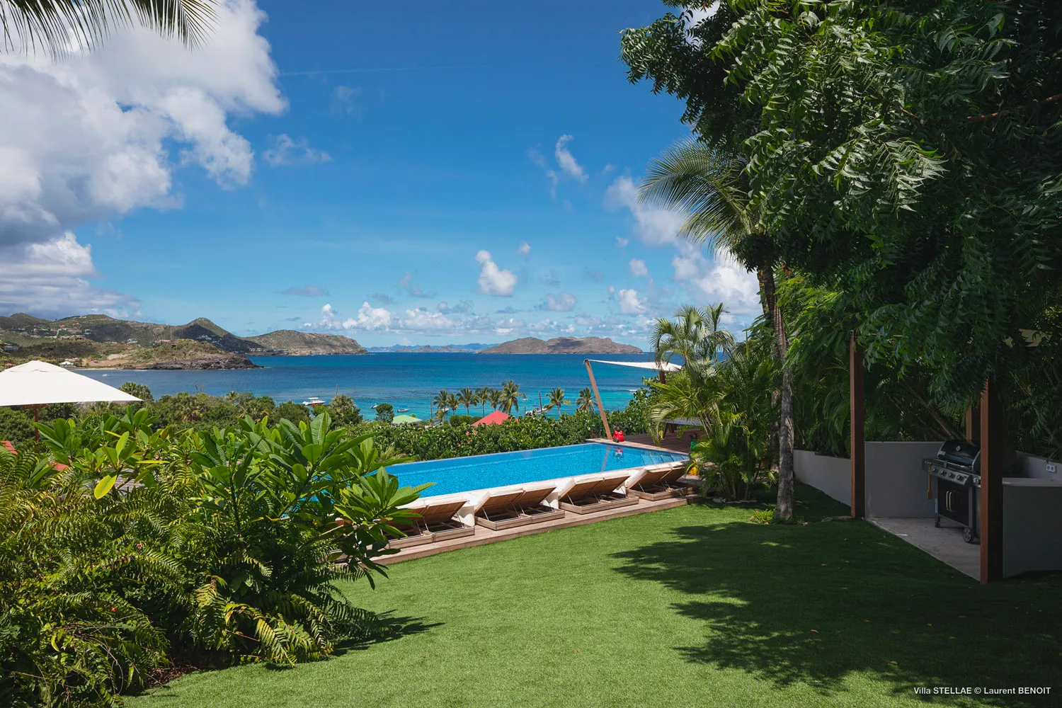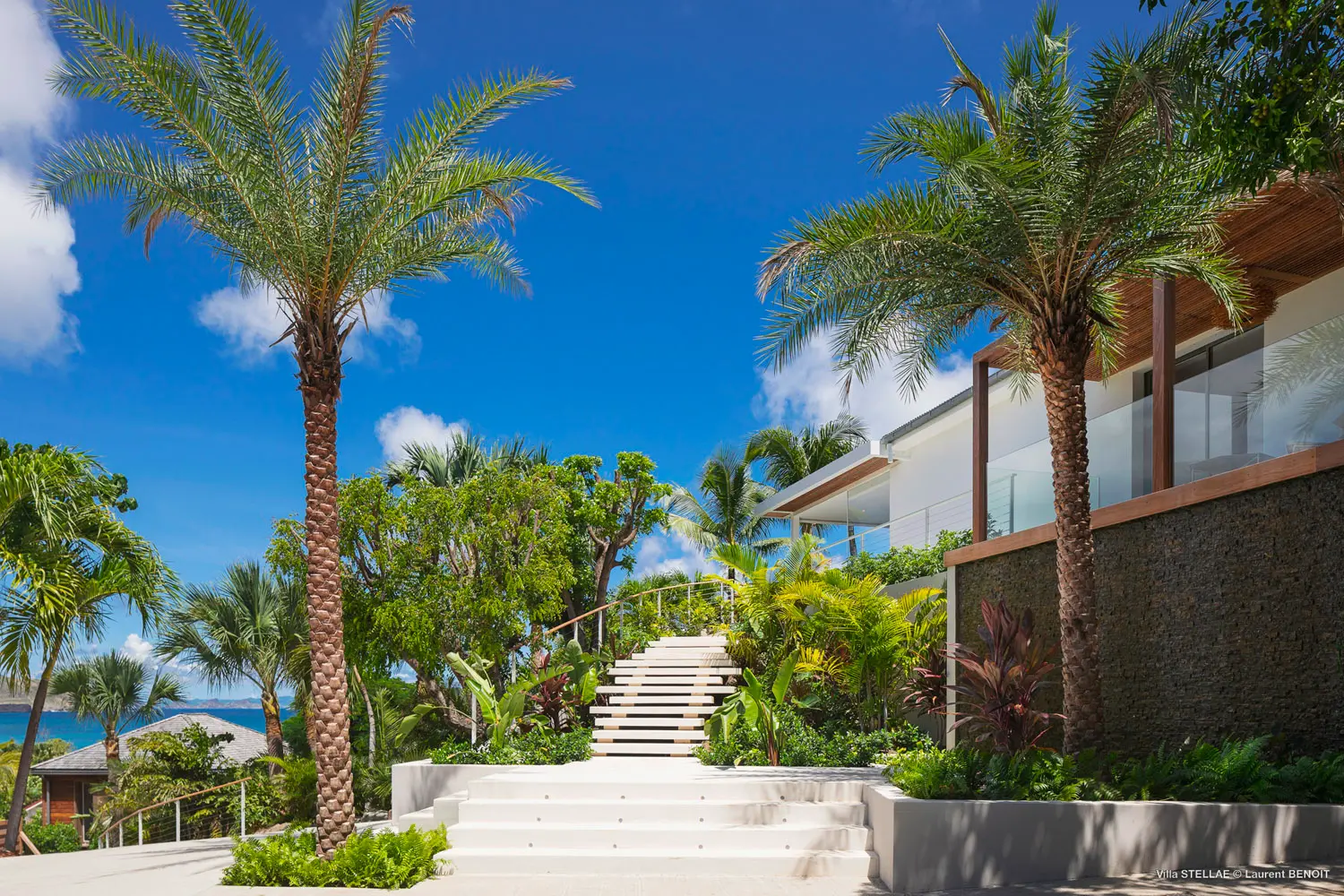 The Stellae Villa is a serene oasis nestled within a vibrant tropical garden, offering an exquisite blend of privacy and luxury. This stunning retreat features six elegantly appointed master suites, each thoughtfully designed to provide guests with spectacular ocean vistas and ultimate comfort. Located just a short stroll from the pristine Lorient Beach and a variety of charming local shops, the villa is ideal for memorable family vacations or relaxing escapes with friends.