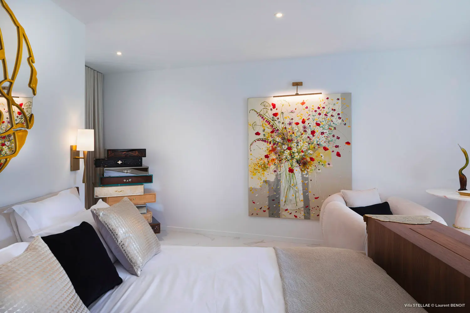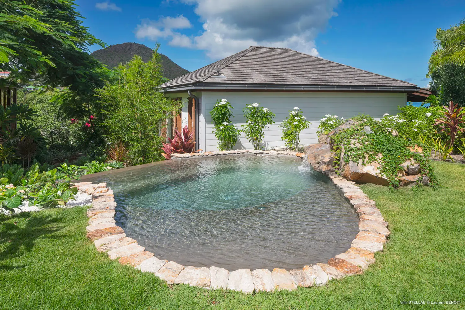Step through the private gates into a tranquil sanctuary where nature and elegance harmonize beautifully. The estate showcases a captivating cascading waterfall wall that flows into a meticulously landscaped pond filled with graceful Koï carp. Guests can unwind by the inviting swimming pool or enjoy the soothing warmth of a natural whirlpool. Completing this extraordinary property is a unique, artistically crafted garden, making The Stellae Villa a rare and enchanting jewel on the island of Saint-Barth.