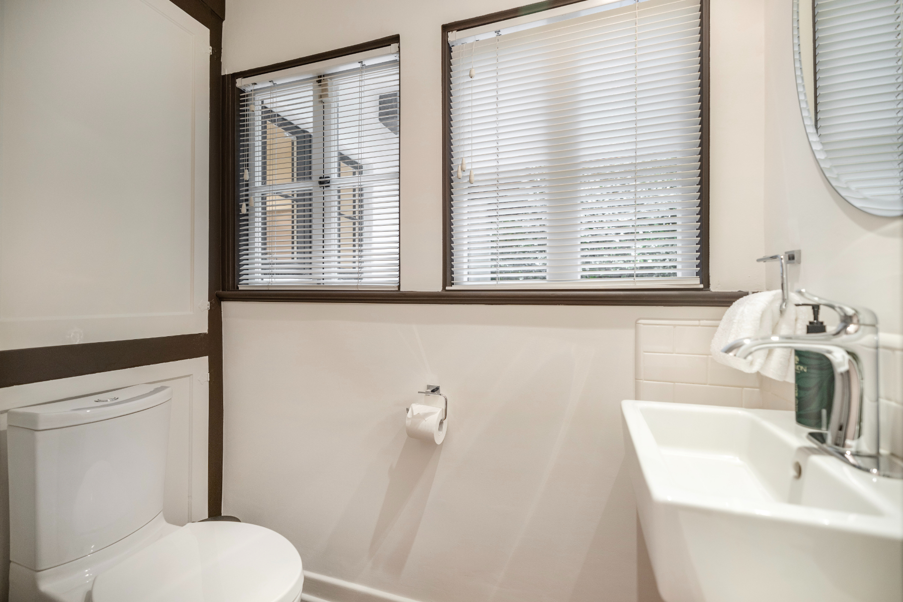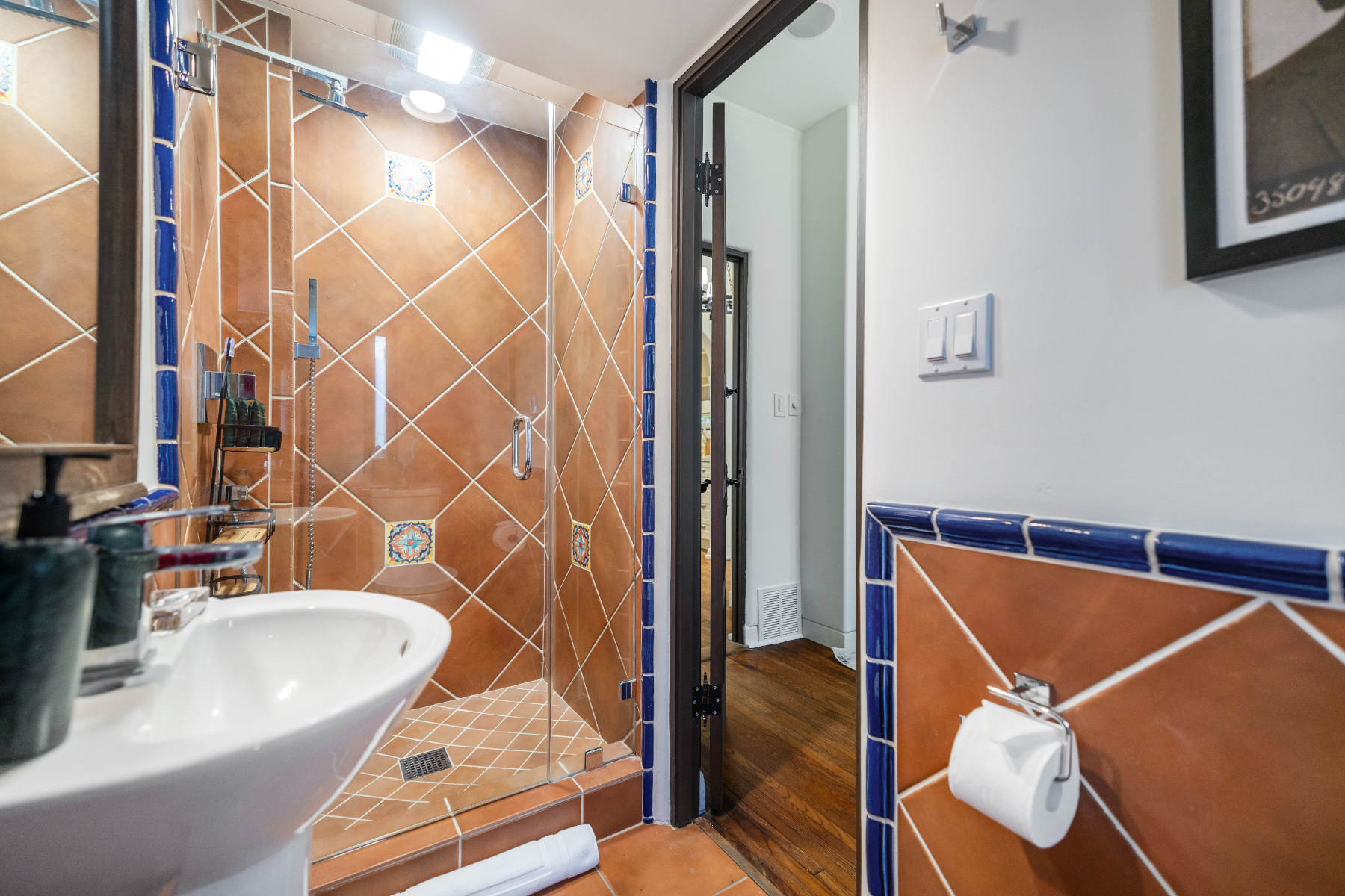 Inside, vaulted beamed ceilings amplify the grandeur of the main level, while an abundance of windows seamlessly integrates the enchanting outdoor landscape with the interior. Ascend the original balustrade to find the light-drenched master suite, complete with a glass-enclosed shower and an oversized soaking tub for spa-like relaxation.