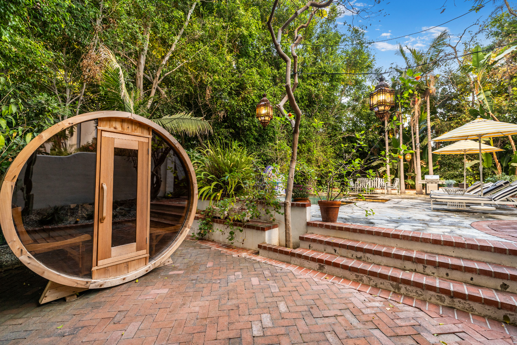 Thoughtfully updated with 21st-century enhancements, this residence boasts a comprehensive whole-home water filtration system, alkaline drinking water, an automated saltwater pool and spa, advanced security cameras, and a Sonos surround sound system. This is your private oasis, perfectly positioned in one of Los Angeles’ most desirable locations.