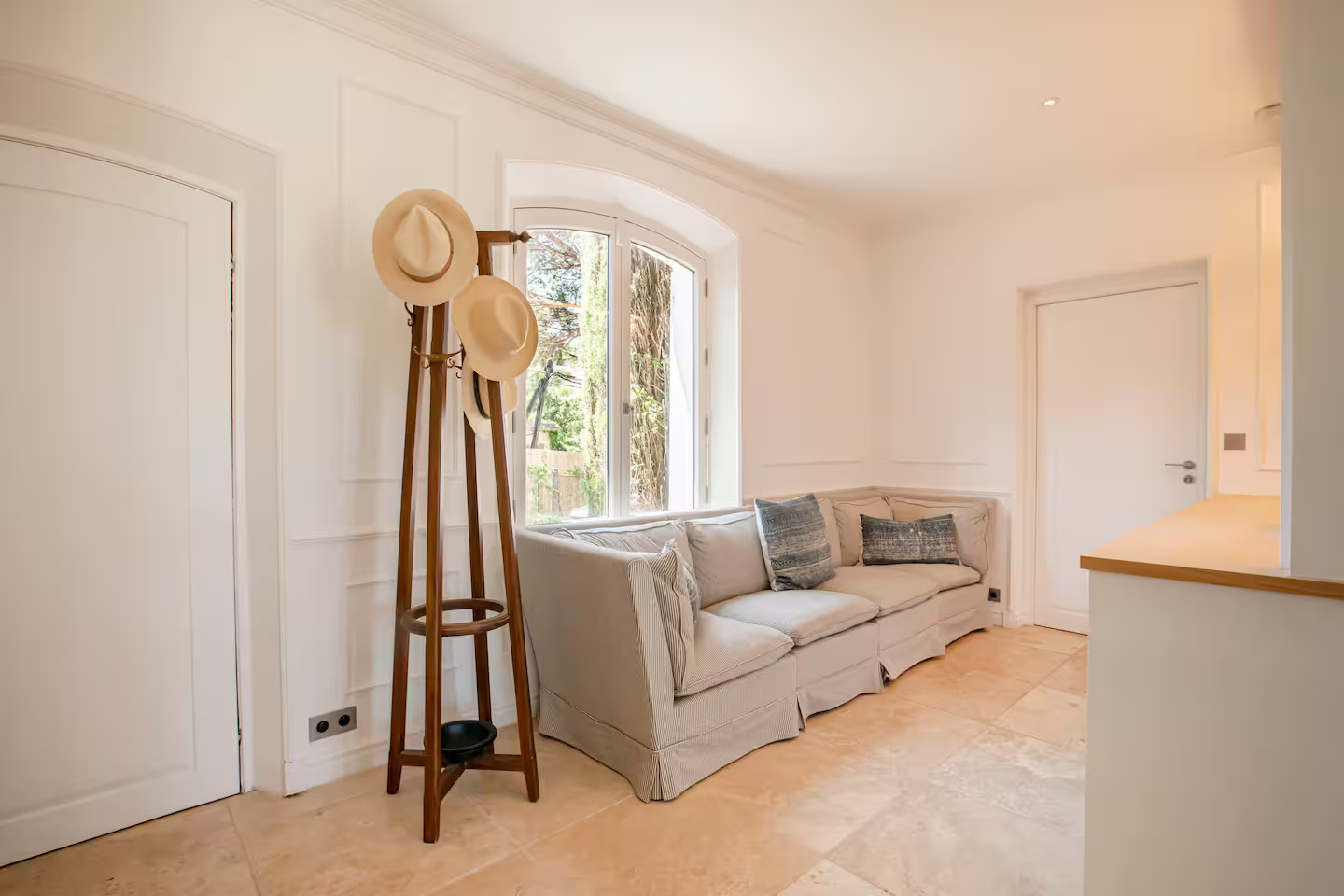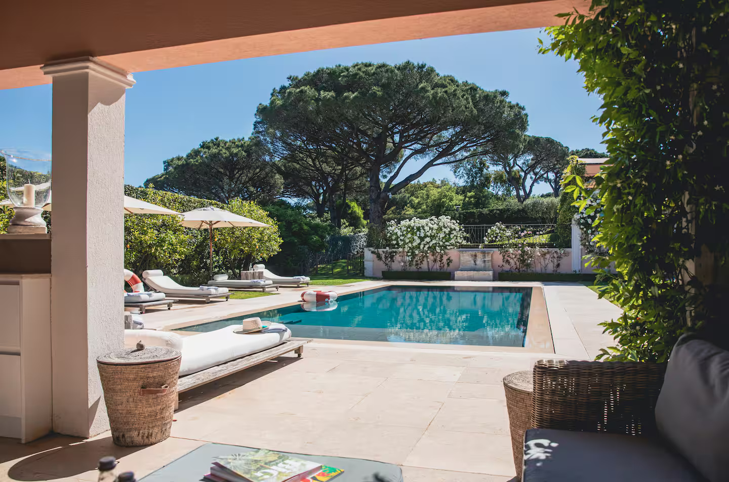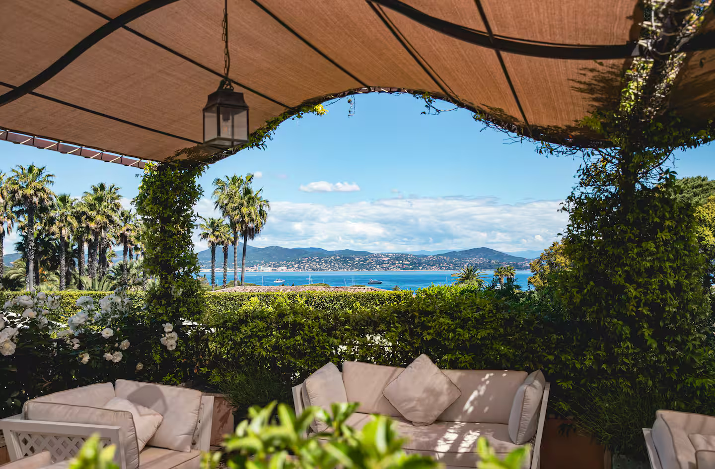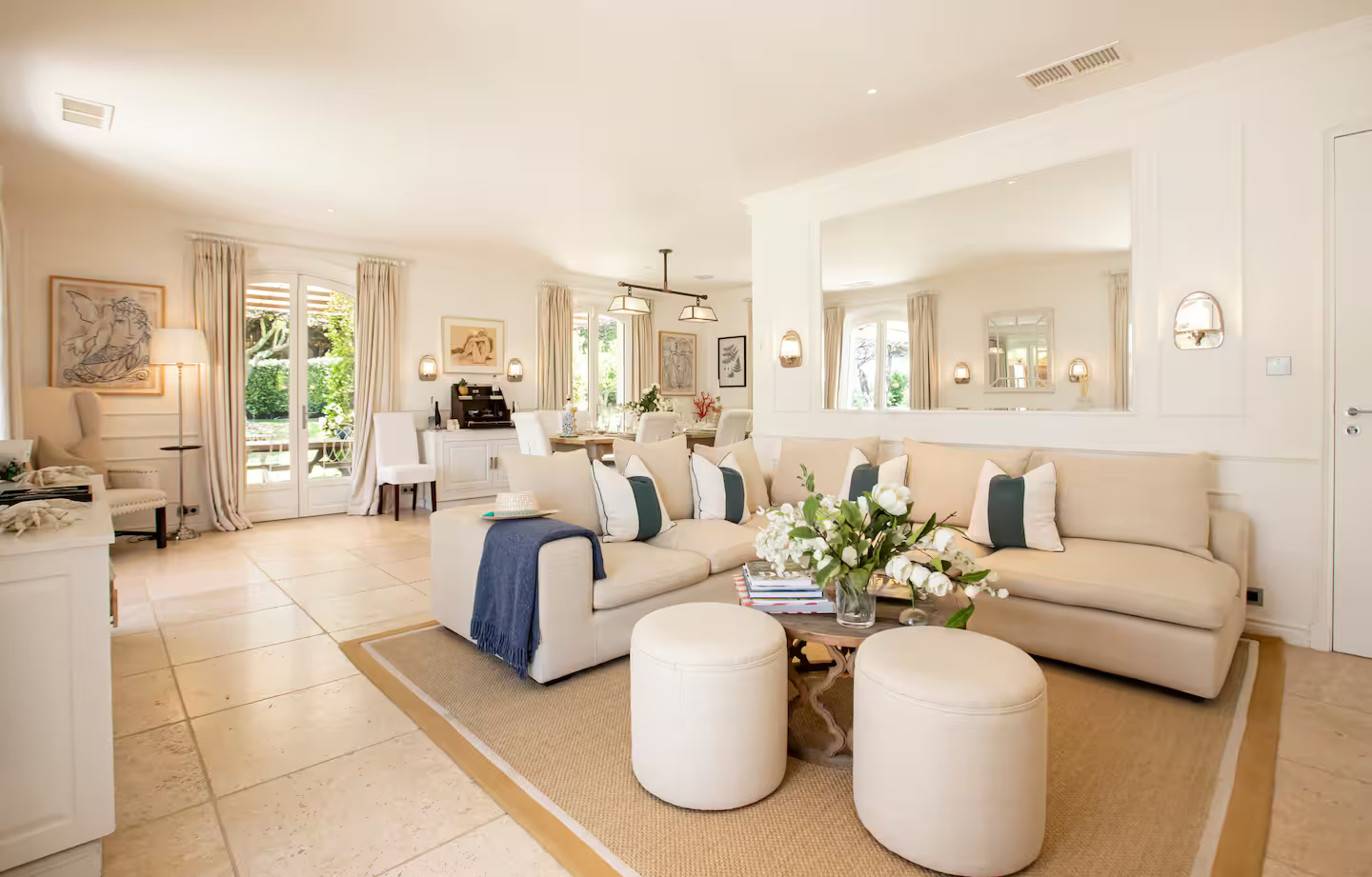 Nestled on the stunning Côte d’Azur, this charming peach-hued villa is beautifully complemented by delicate baby blue shutters. Inside, the interiors are adorned with earthy tones and luxurious decor, all illuminated by abundant natural light. As you sip a glass of champagne, wander through the enchanting garden, where the gentle rustle of leaves beckons you to explore. The inviting deep-azure pool offers a perfect spot for a refreshing swim or a serene float under the captivating starry night sky.
