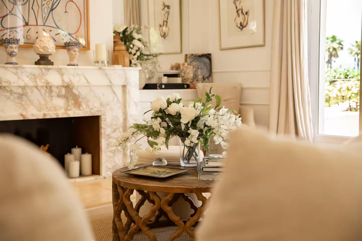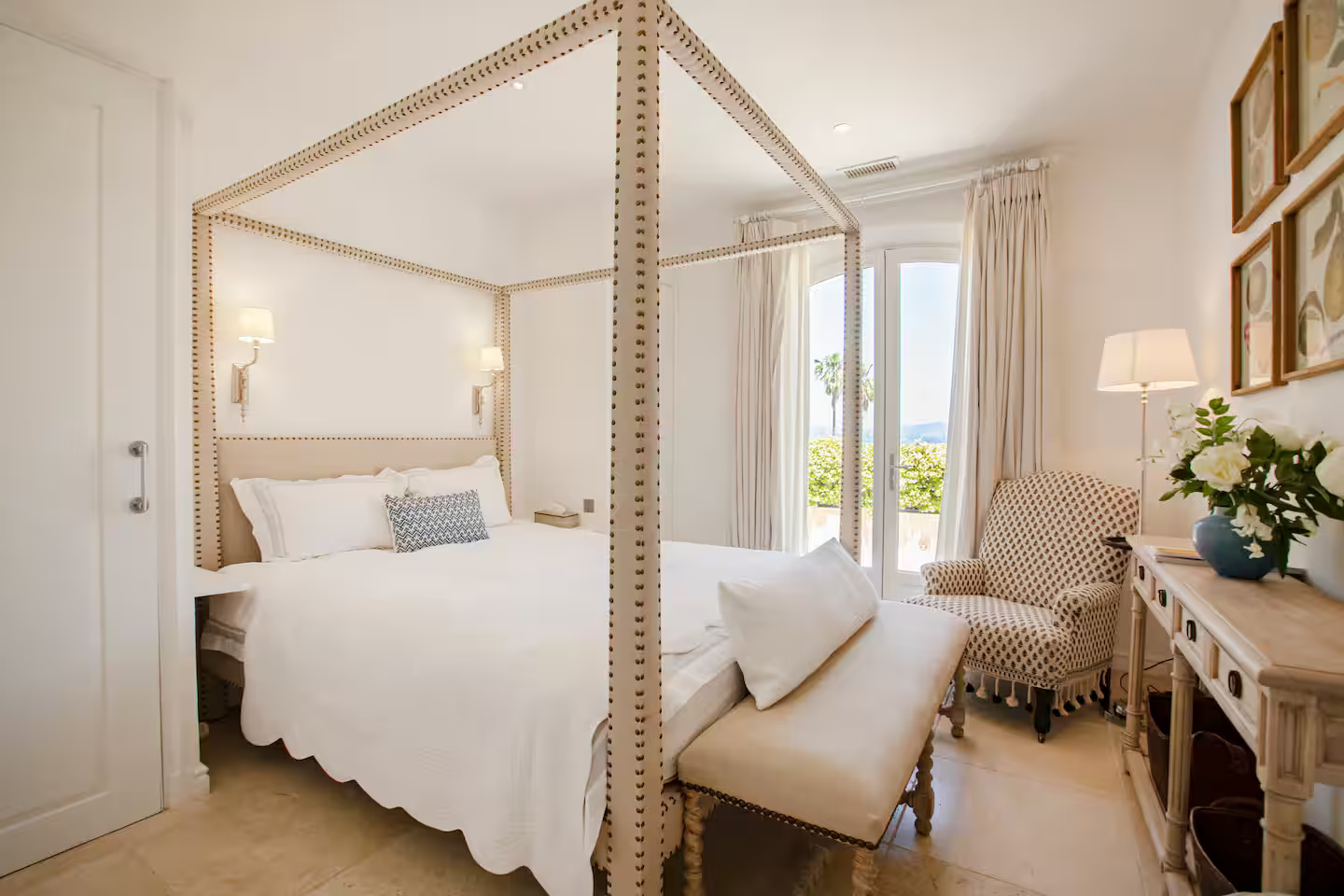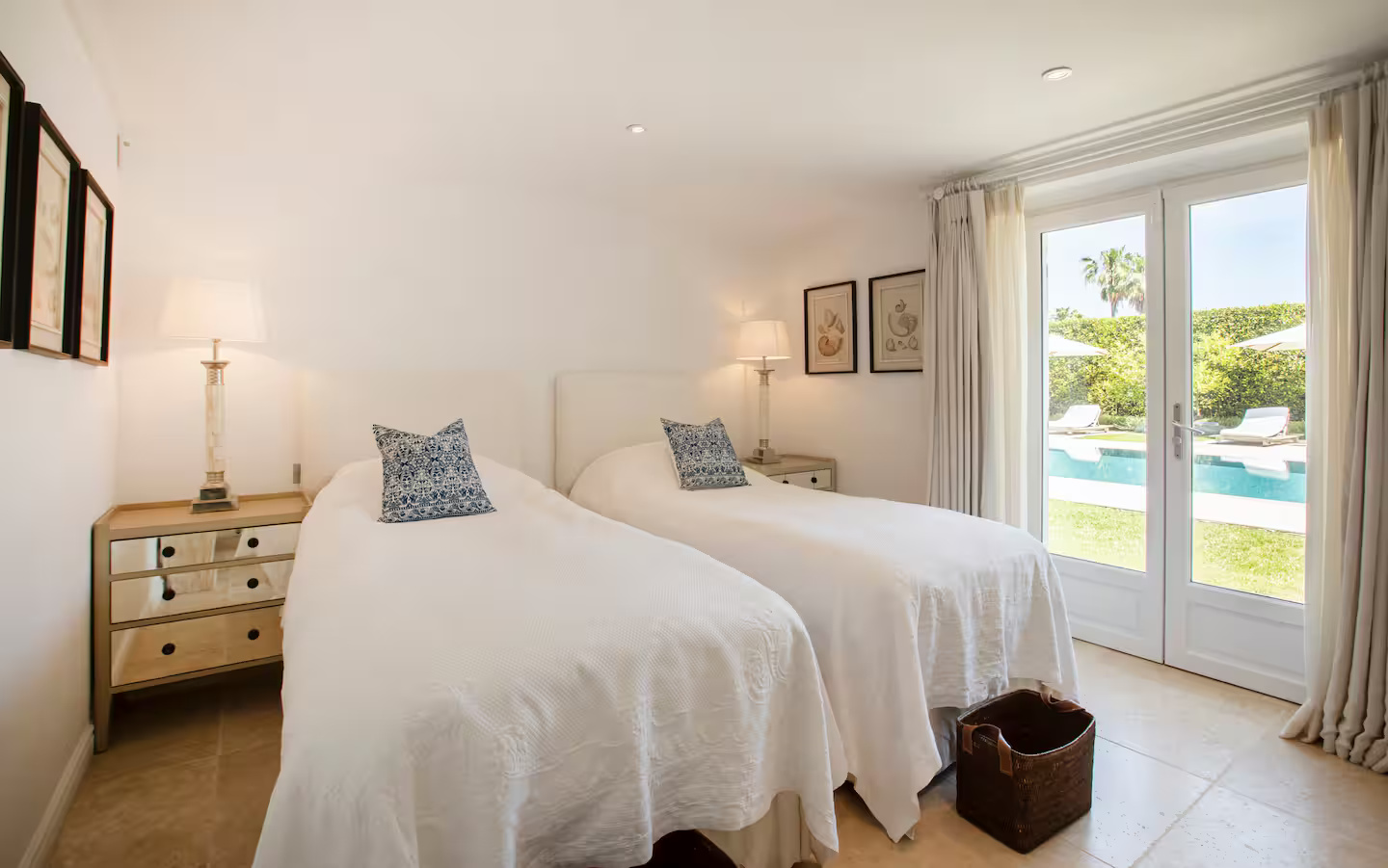 Nestled on the stunning Côte d’Azur, this charming peach-hued villa is beautifully complemented by delicate baby blue shutters. Inside, the interiors are adorned with earthy tones and luxurious decor, all illuminated by abundant natural light. As you sip a glass of champagne, wander through the enchanting garden, where the gentle rustle of leaves beckons you to explore. The inviting deep-azure pool offers a perfect spot for a refreshing swim or a serene float under the captivating starry night sky.