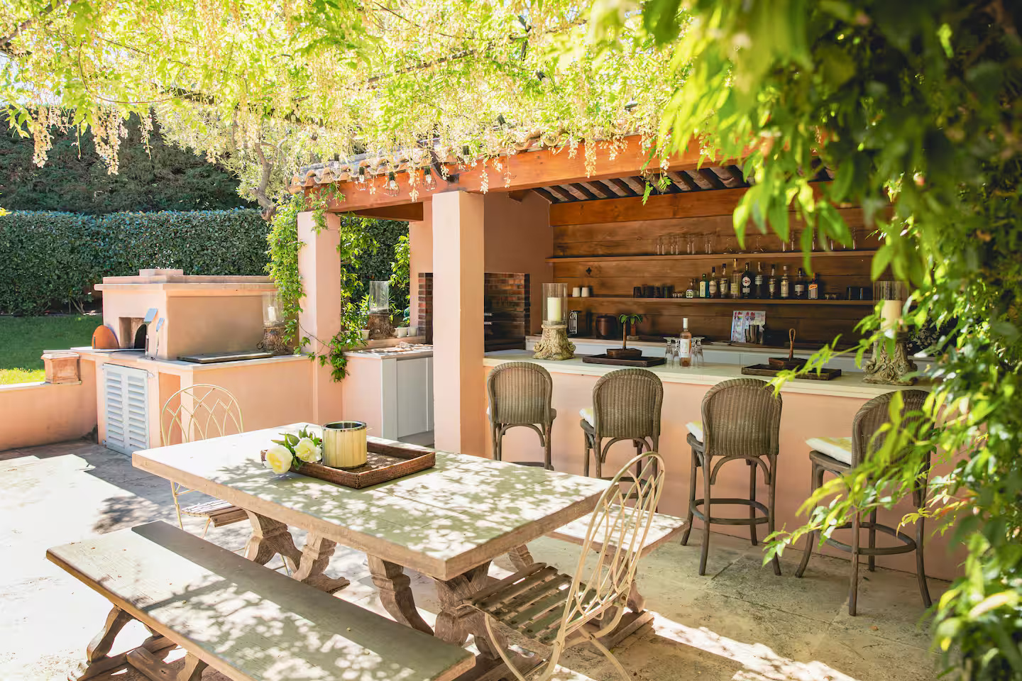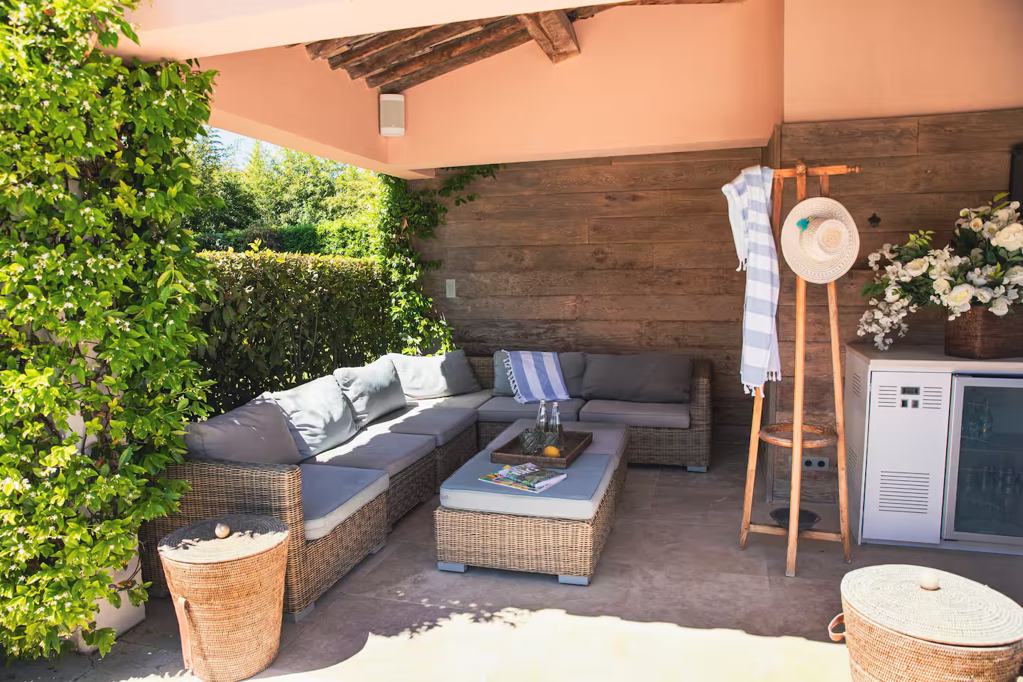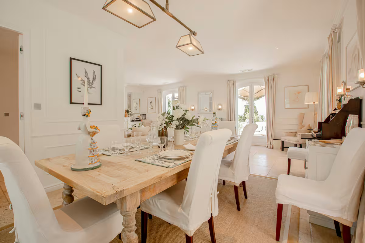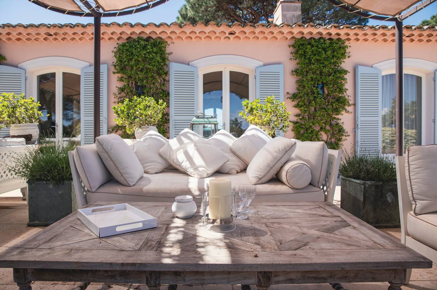Nestled on the stunning Côte d’Azur, this charming peach-hued villa is beautifully complemented by delicate baby blue shutters. Inside, the interiors are adorned with earthy tones and luxurious decor, all illuminated by abundant natural light. As you sip a glass of champagne, wander through the enchanting garden, where the gentle rustle of leaves beckons you to explore. The inviting deep-azure pool offers a perfect spot for a refreshing swim or a serene float under the captivating starry night sky.