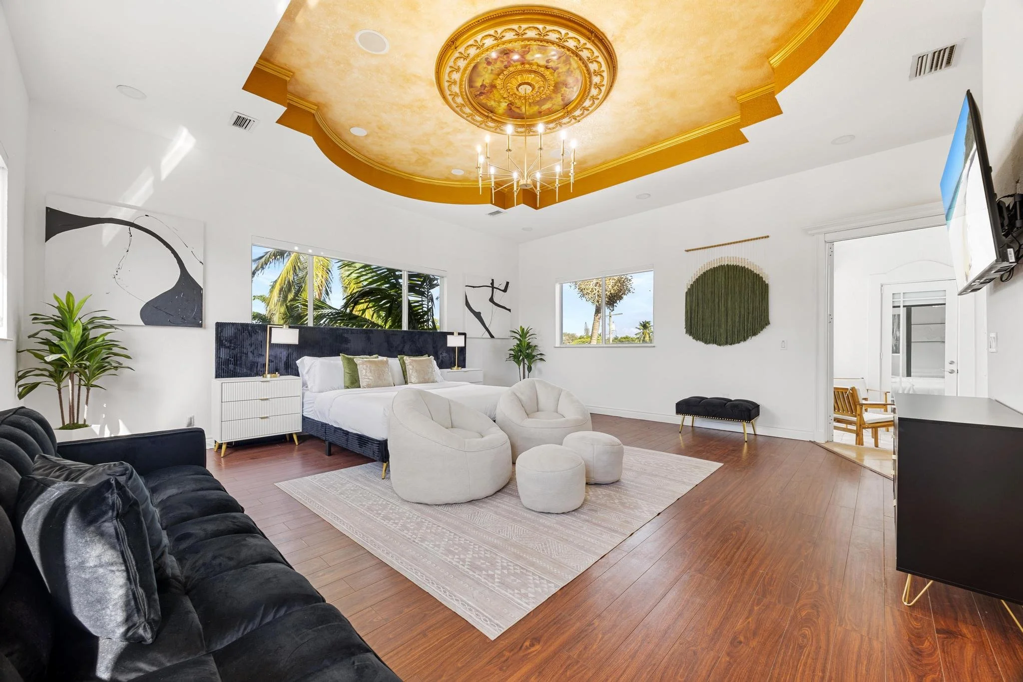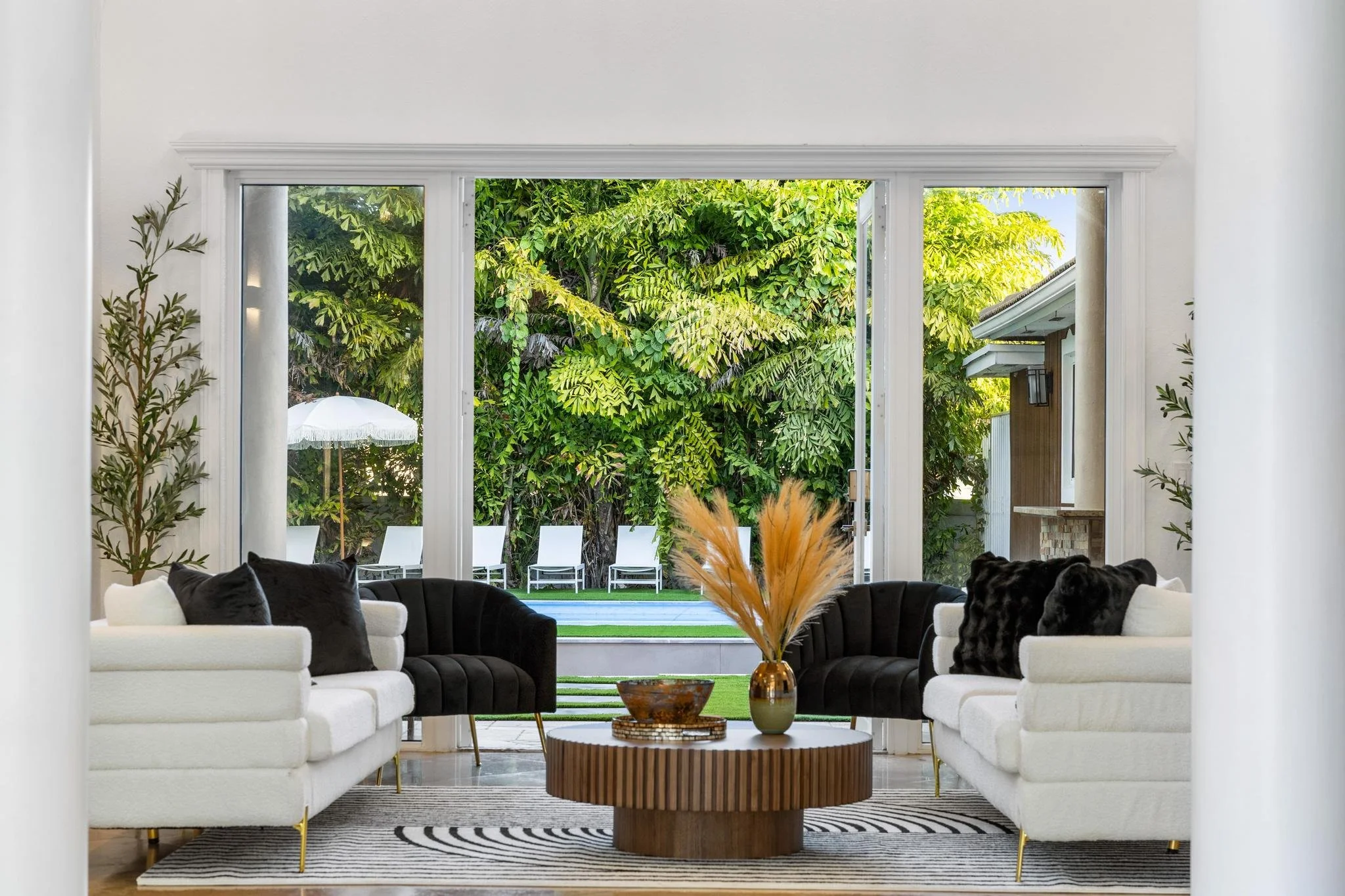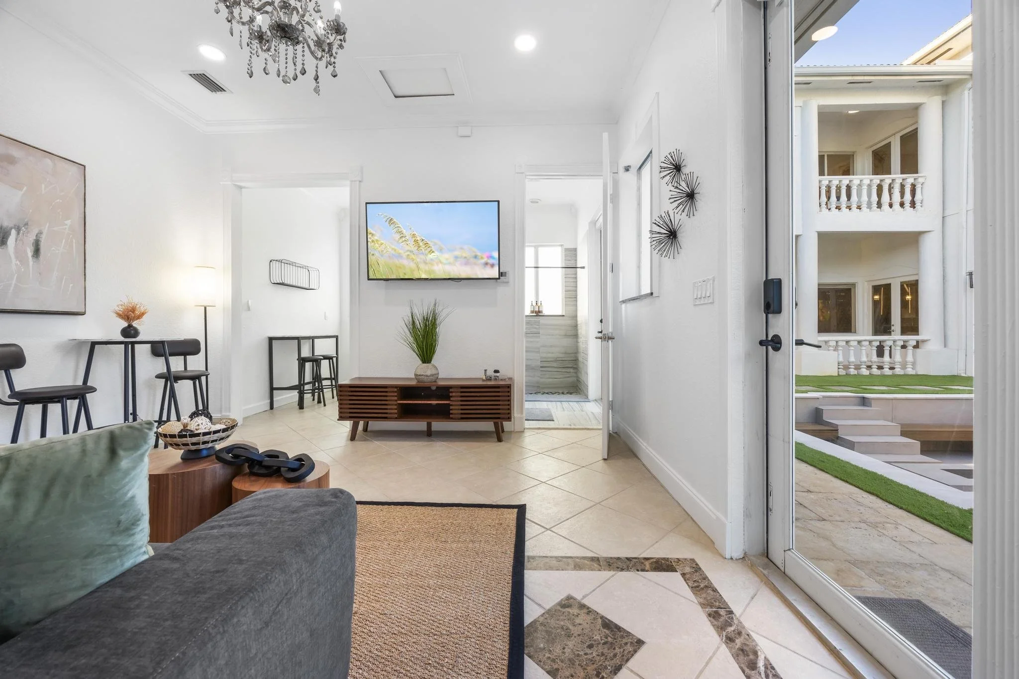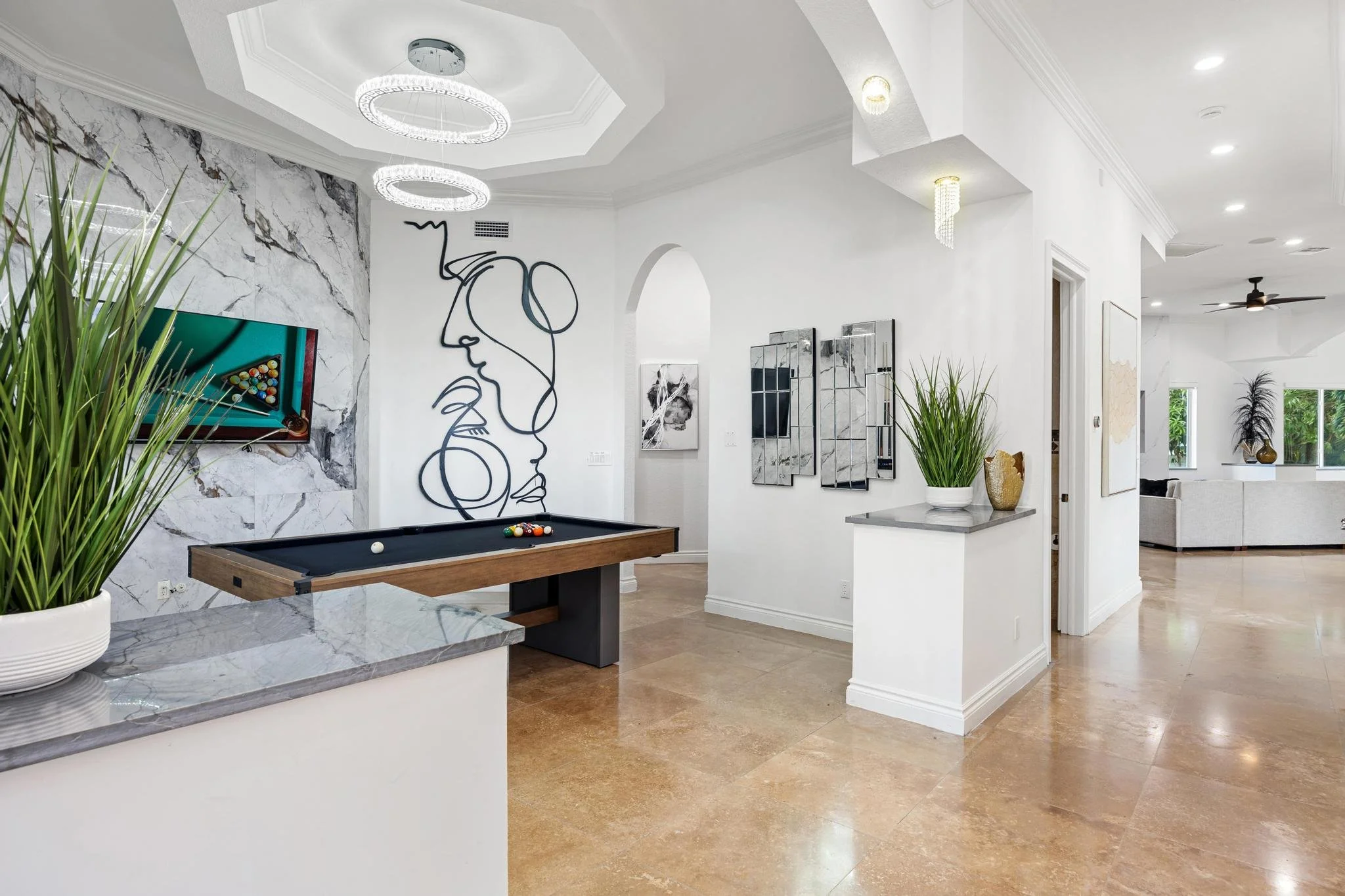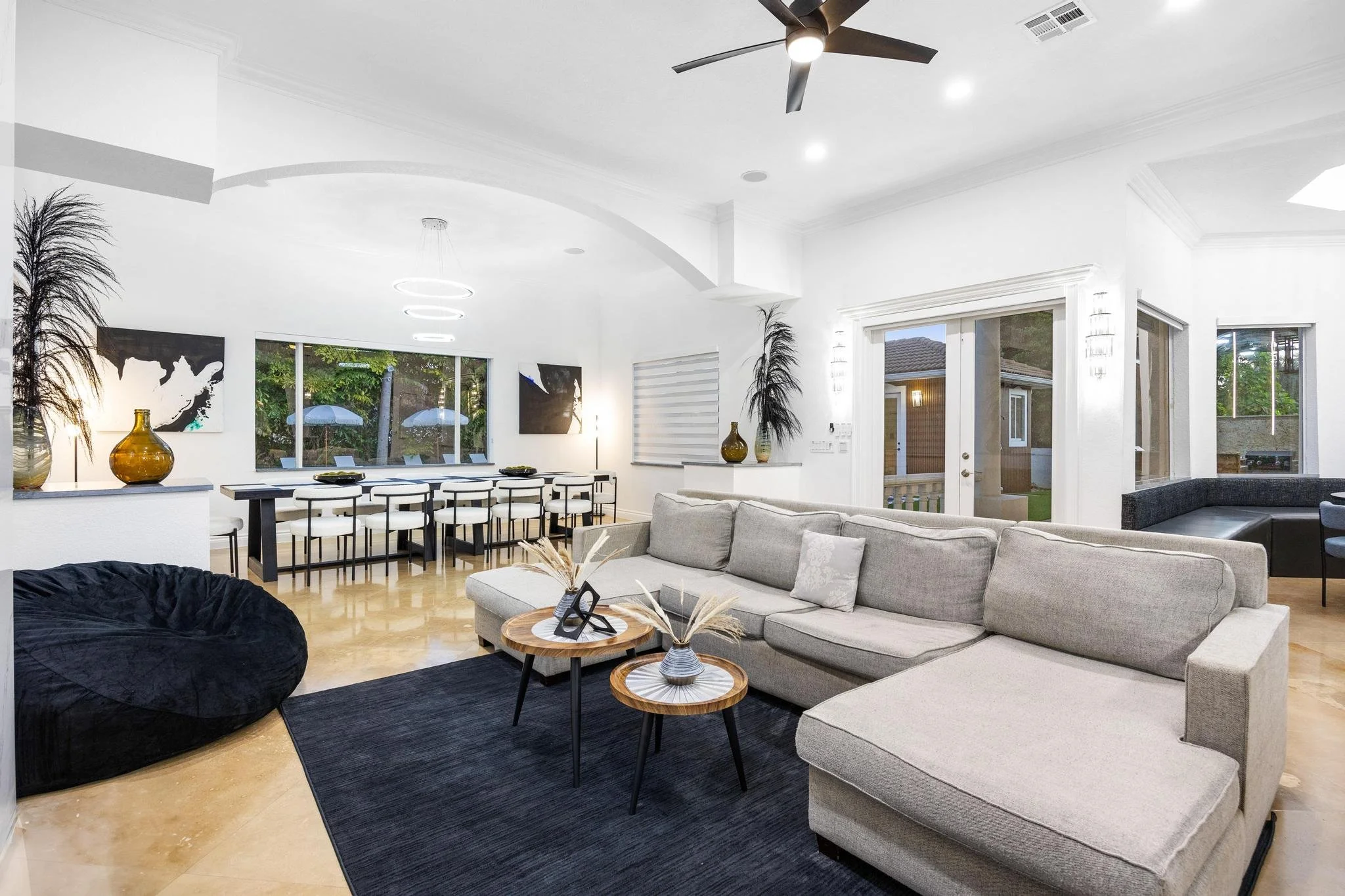 Step outside to discover a tranquil koi pond, along with fun activities like badminton and mini golf. Gather around the contemporary sunken fire pit in the expansive backyard, perfect for memorable evenings. Combining a prime location with sophisticated design, The Tortuga Villa sets the stage for extraordinary celebrations and luxurious escapes — the ultimate Miami lifestyle where comfort seamlessly blends with grandeur.