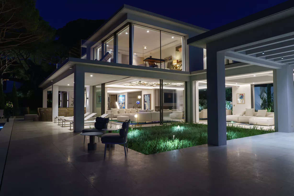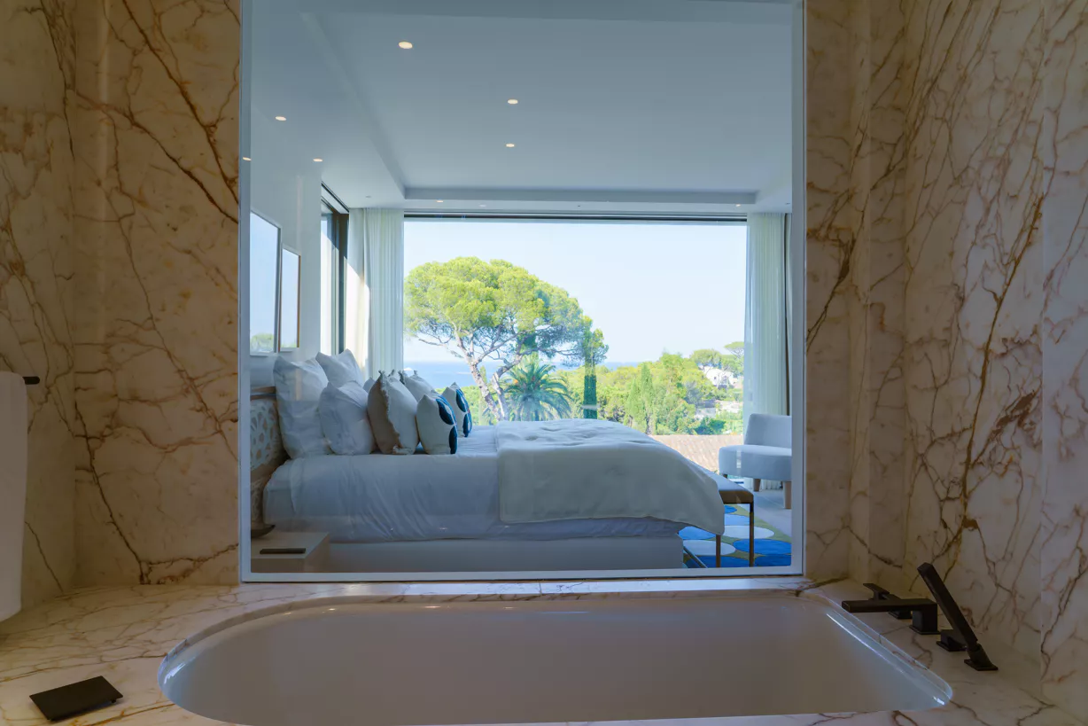 Nestled in the hills above Saint-Tropez, The Vitrus Villa boasts breathtaking panoramic views of the Mediterranean, where the endless blue of the sea seamlessly meets the horizon. This exceptional location is just minutes away from the iconic beaches and vibrant hotspots of the French Riviera, making it a perfect embodiment of elegance and sophistication.