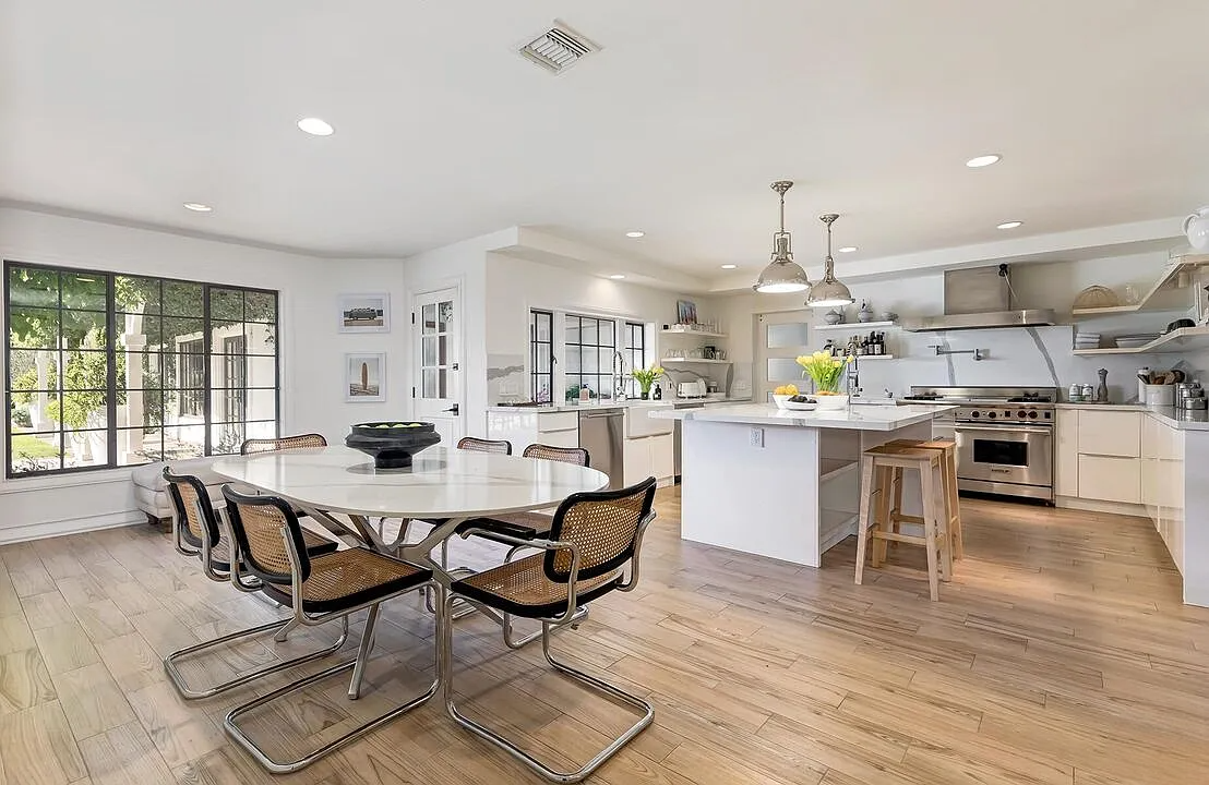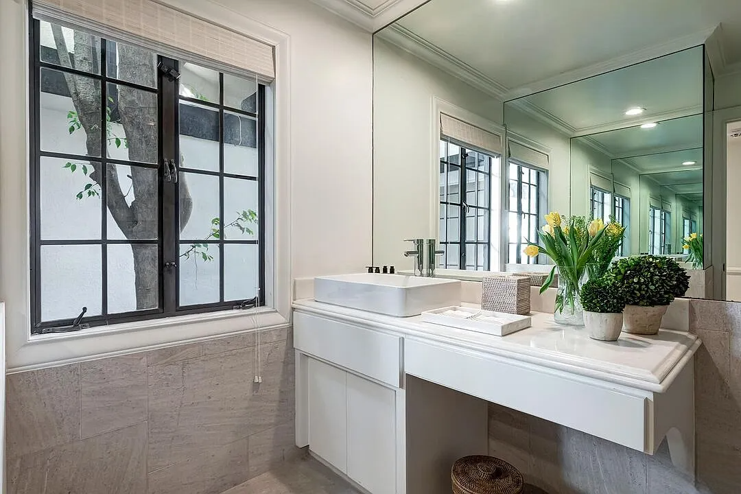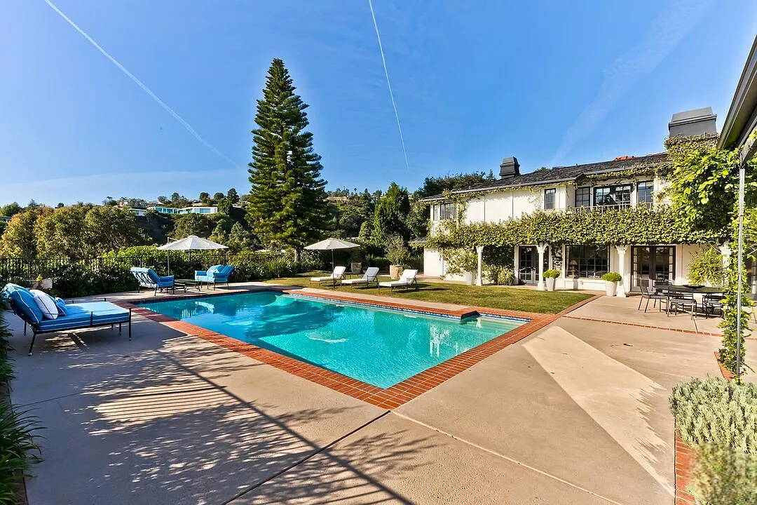 The property is defined by its exceptionally large, lush grounds, providing a level of scale and privacy that is truly unique for the area. Seamless indoor-outdoor flow is achieved through multiple French doors that open to expansive stone terraces, a generous lawn, and an oversized pool with a spa. The chef’s kitchen, equipped with premium stone finishes and custom cabinetry, flows naturally into casual family areas, making the home as functional for daily living as it is for grand-scale entertaining. With a three-car garage and a location just moments from the Sunset Strip, this estate offers an unparalleled retreat for executive relocation or a premier holiday residency.