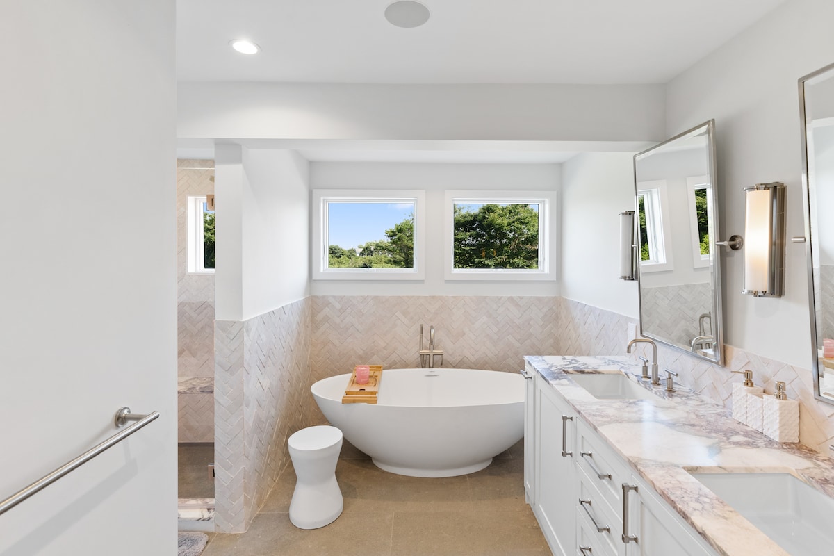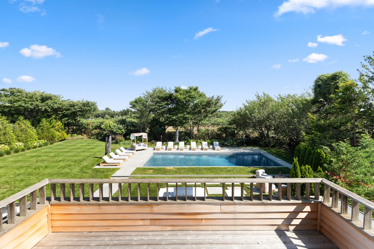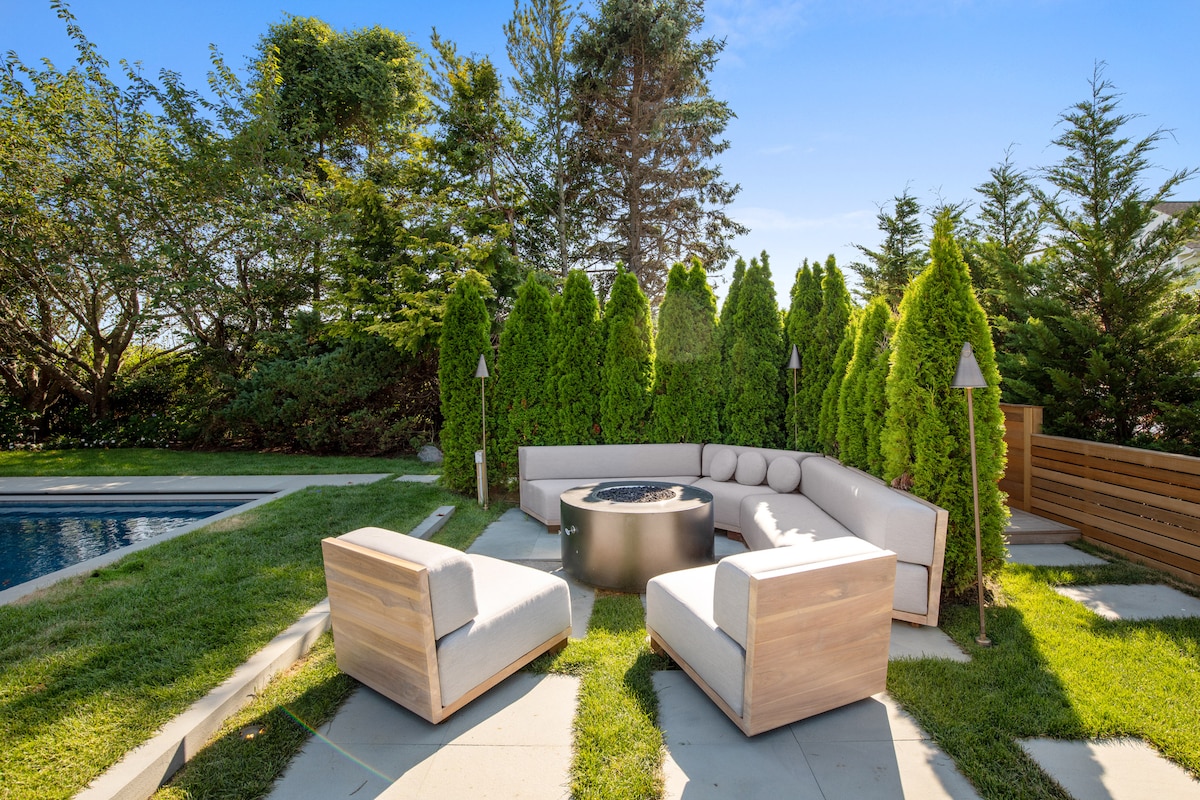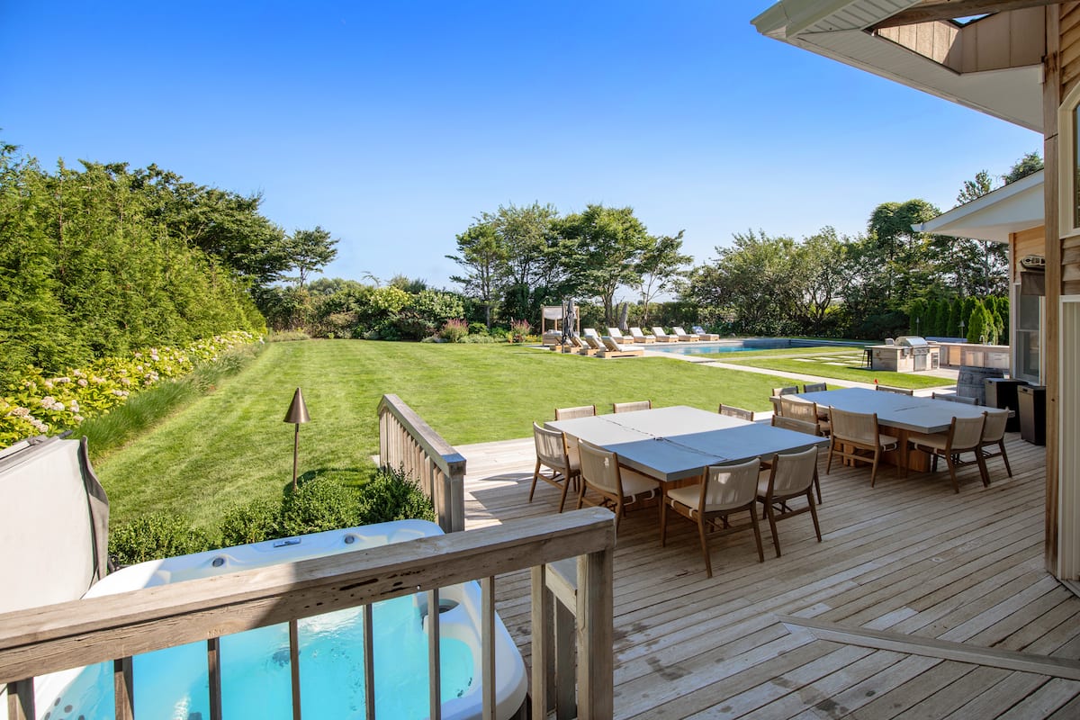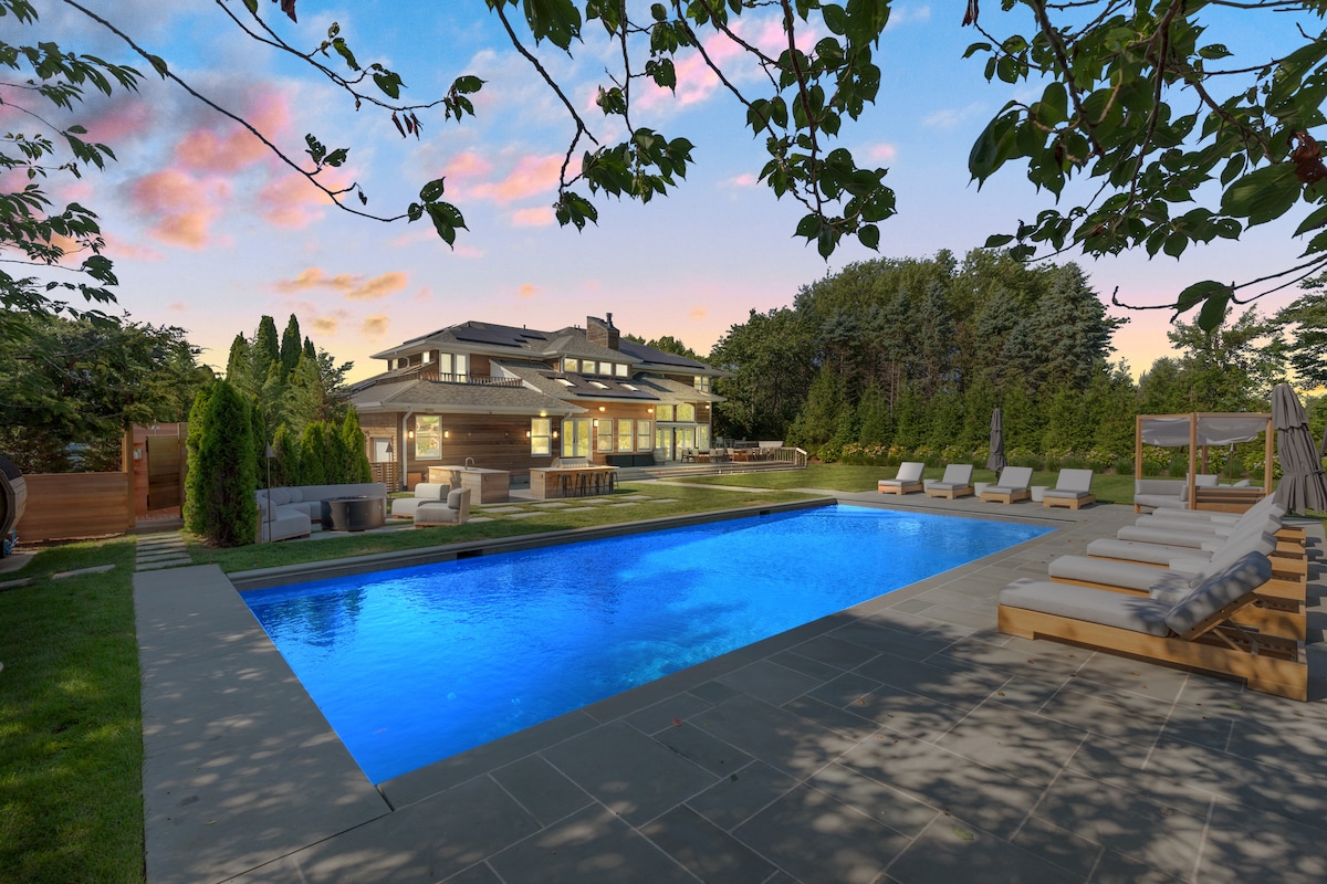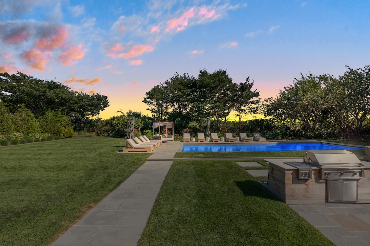 Luxury 9000 SF Southampton villa with a heated gunite pool, hot tub, steam shower & sauna, 9-bedroom, 8.5-bathroom, nestled on a quiet cul-de-sac in Watermill. Bright with large windows, e-shades in bedrooms, indoor/outdoor sound system, W/D on every floor (3 sets). Formal dining/living area, chefs’ kitchen, TV room, movie room, gym, outdoor kitchen, arcade, pool table, air hockey and foosball. Please read our disclosures & house manual. Not a party house and no events permitted.