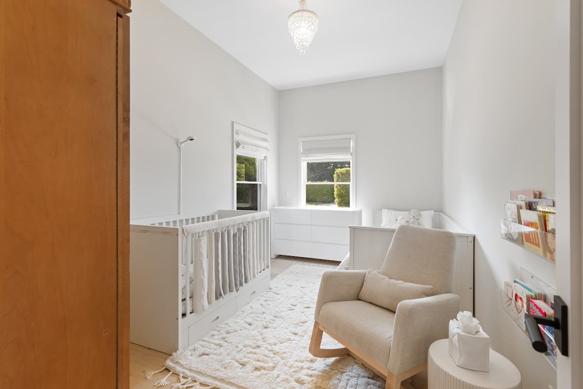 Bedroom: Crib and twin bed (shared hall bathroom tub/shower)